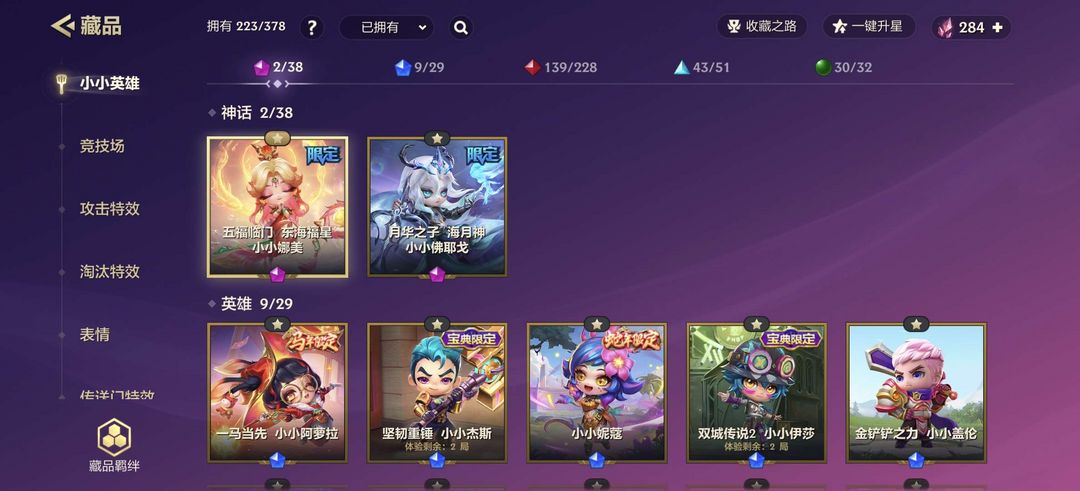 装备描述:竞技场11,小小英雄223 神话限定 五福临门 东海福星 娜美,蛇限妮蔻,马限阿罗拉,宝典限定萨勒芬妮,金克斯瑞文盖伦腕豪 ,传说福星高照小瑞 竞技场英雄限定级金枝玉叶鲤鱼池,传说级铲铲市美食步行街 粽子节的大龙舟 魔法瀑布 攻击特效众多 福星小马传送门 德玛西亚正义局内按键