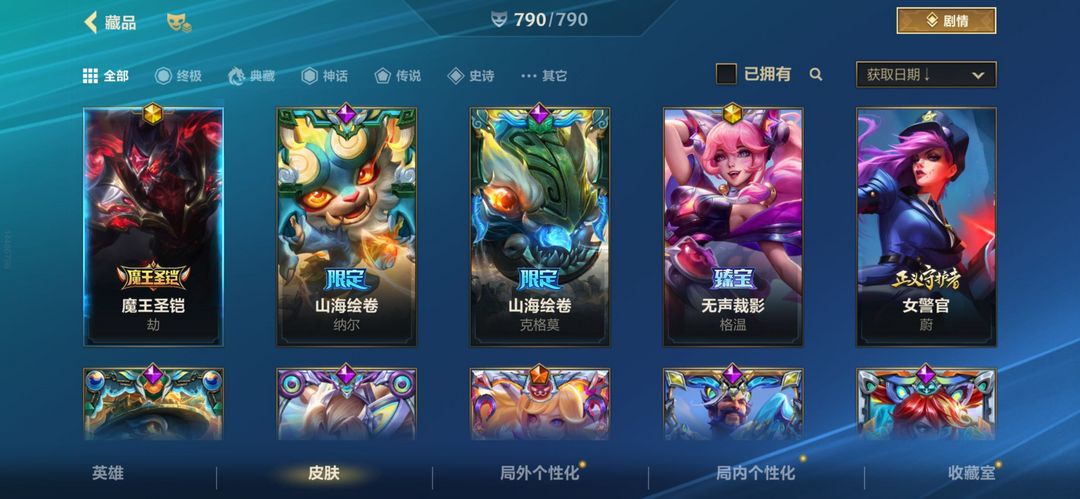 上不去看评价/觉醒金克丝终结特效/790皮肤/收藏分19W/时空探索全/国服收藏59