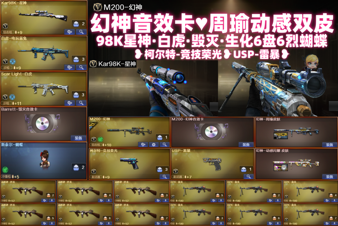 生化6盘6烈蝴蝶✅M200-幻神音效卡⚡周瑜动感闪耀双皮USP雷暴98K星神⚡柯尔特竞技荣光白虎毁灭