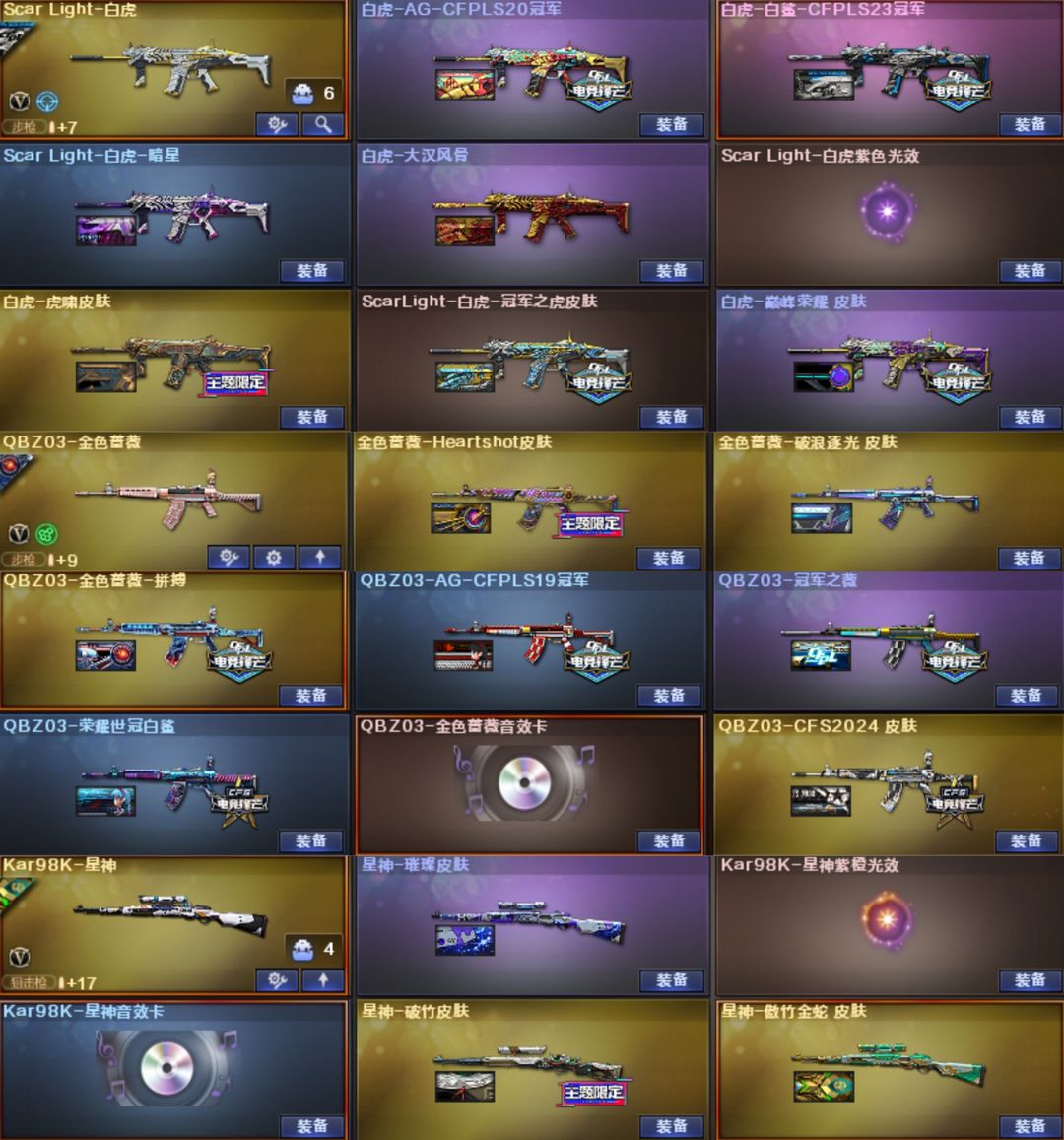 星骇幽瞳幻影天戎⭐幻神音效卡EP宠儿十皮⭐裁决音效卡3皮⭐白虎冠军白鲨7皮⭐QBZ拼搏冠薇7皮