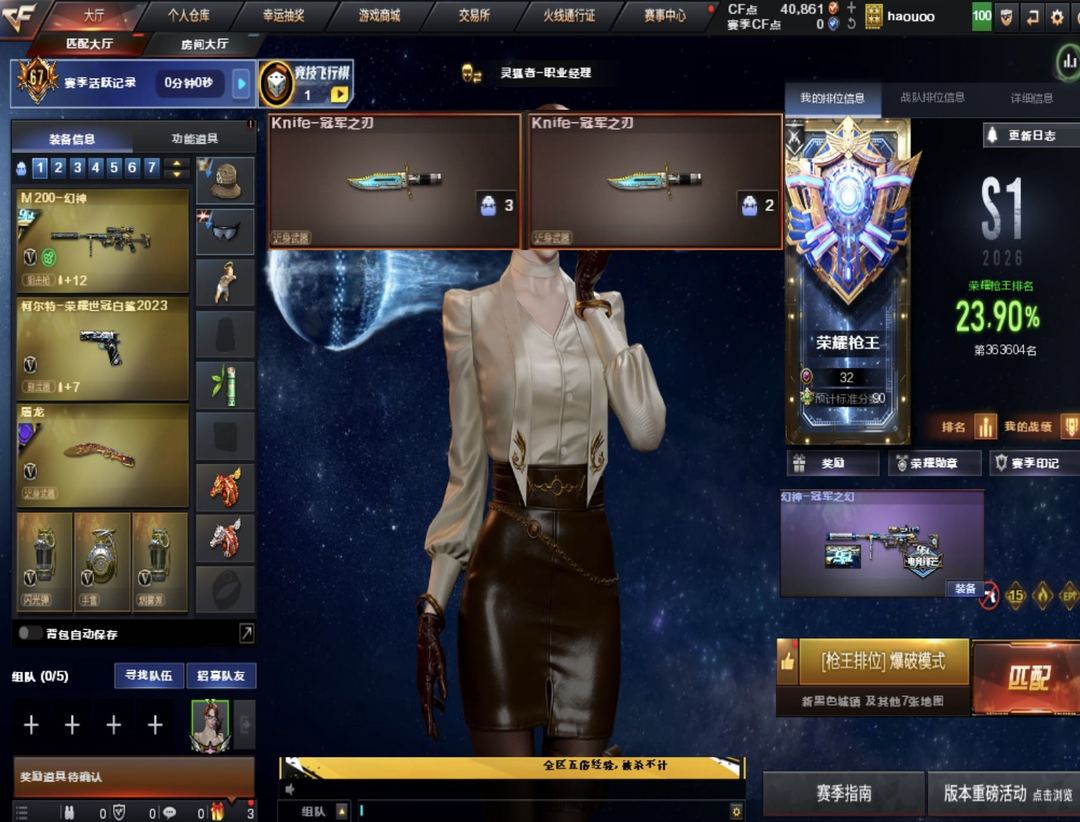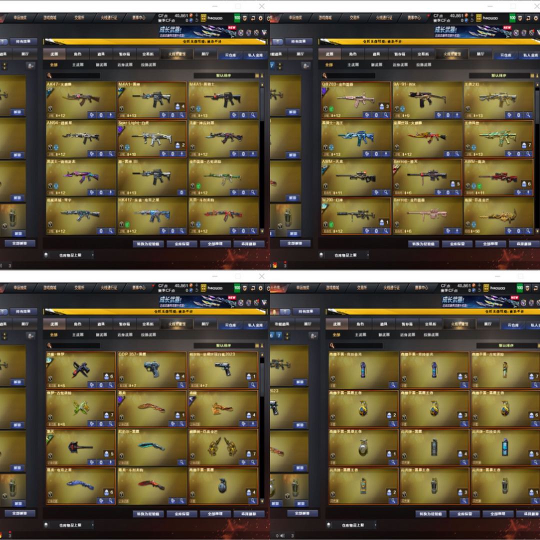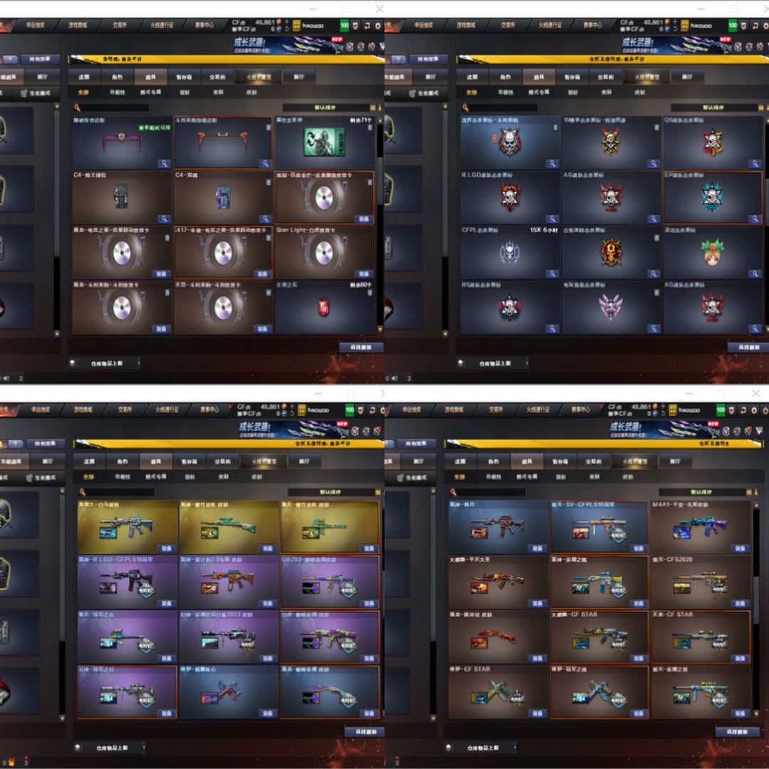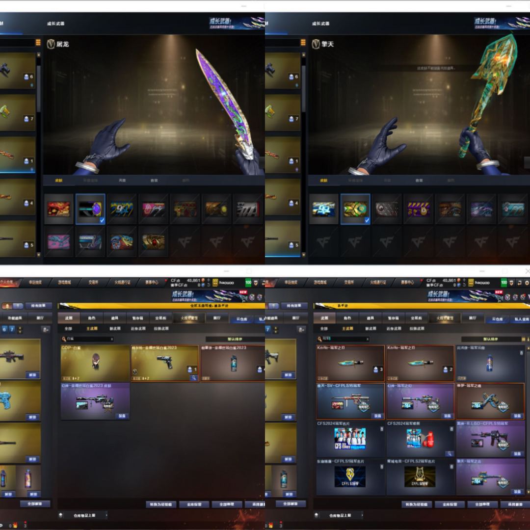 装备描述:已备案 出现一点作弊开挂立马报警追踪 荣耀枪王段 可排位 冠军之刃两把 幻神+冠军之幻+2023白鲨皮+蓝粉光效 2023白鲨柯尔特 2023白鲨烟雾弹 qbz巅峰荣耀皮肤 屠龙巅峰荣耀皮肤 金色光效 雷神荣耀皮肤+LGD皮肤+金色光效 毁灭cfs2020皮肤+sv皮肤+金色光效 擎天冠军皮肤+傲竹金蛇皮肤+金色光效 cop357雷霆 cop357极地霜雄 雷霆手雷一套 王者雷霆手雷三套 竞技荣光手雷一套 EP AG LGD Q9 击杀图标 多玩偶 Colt1911-cfs三把等等 王者之幻 王者风势 Scar Light-马枪 雷暴王者手雷套