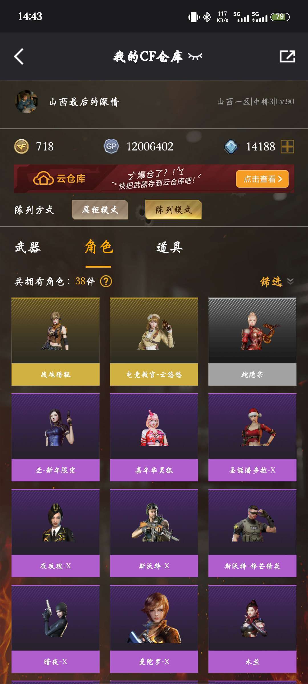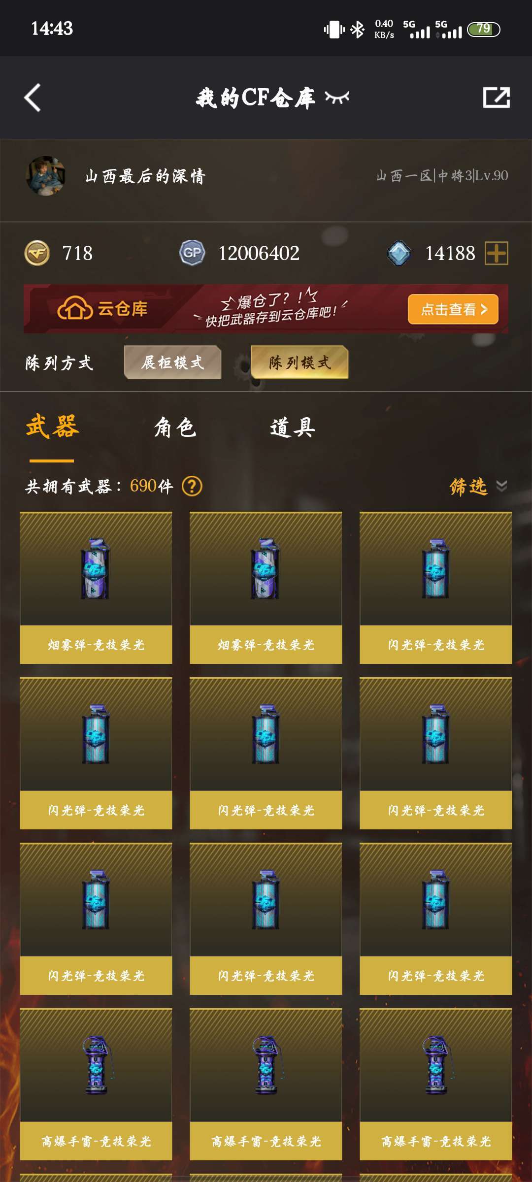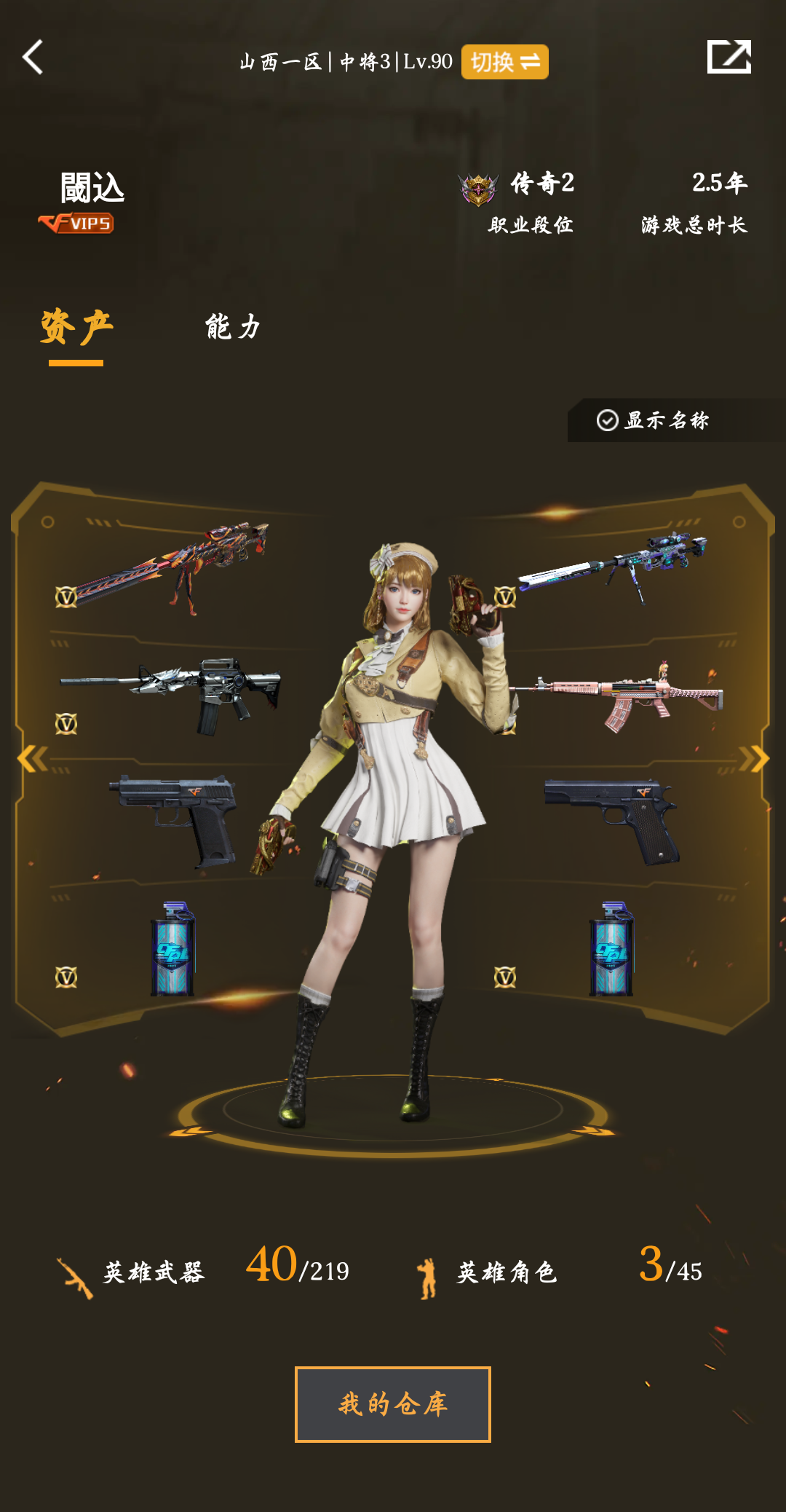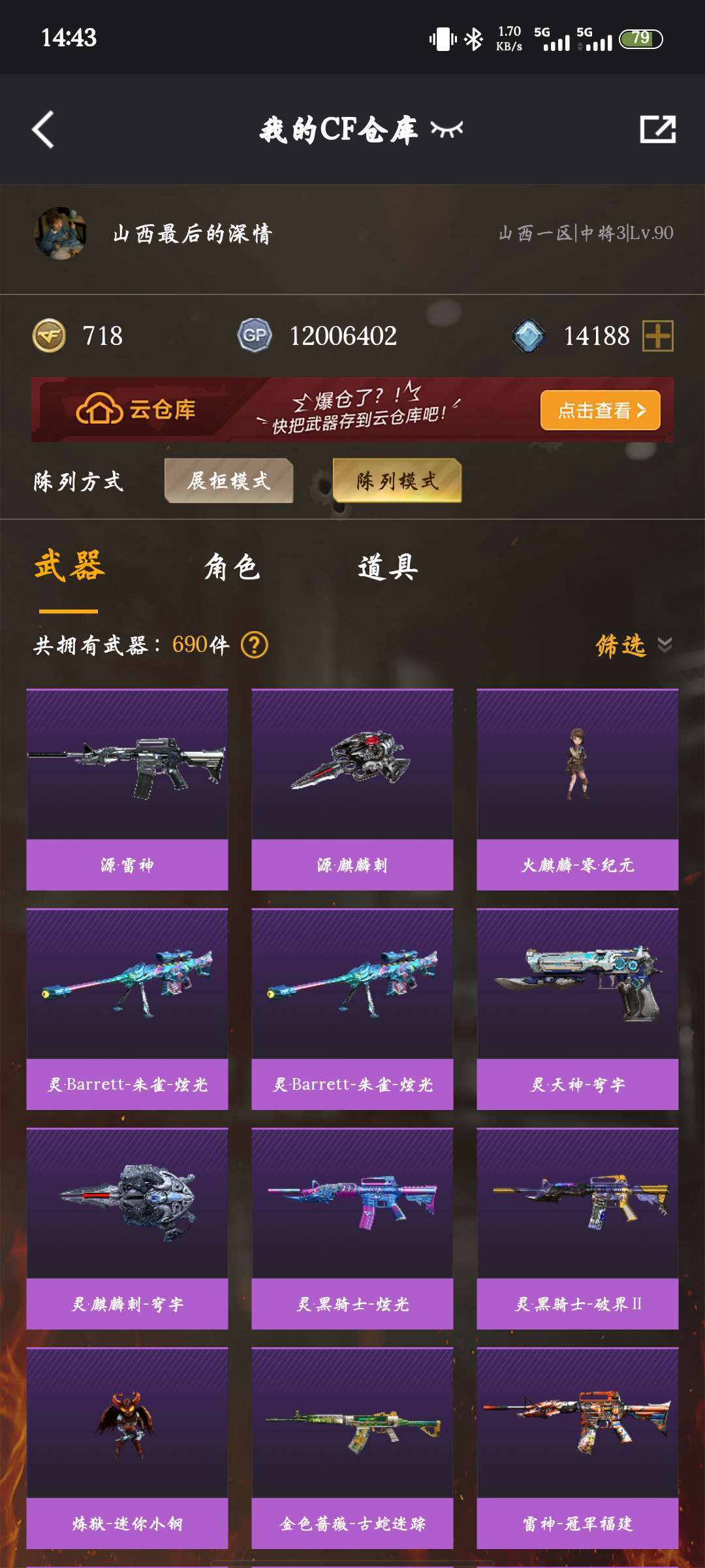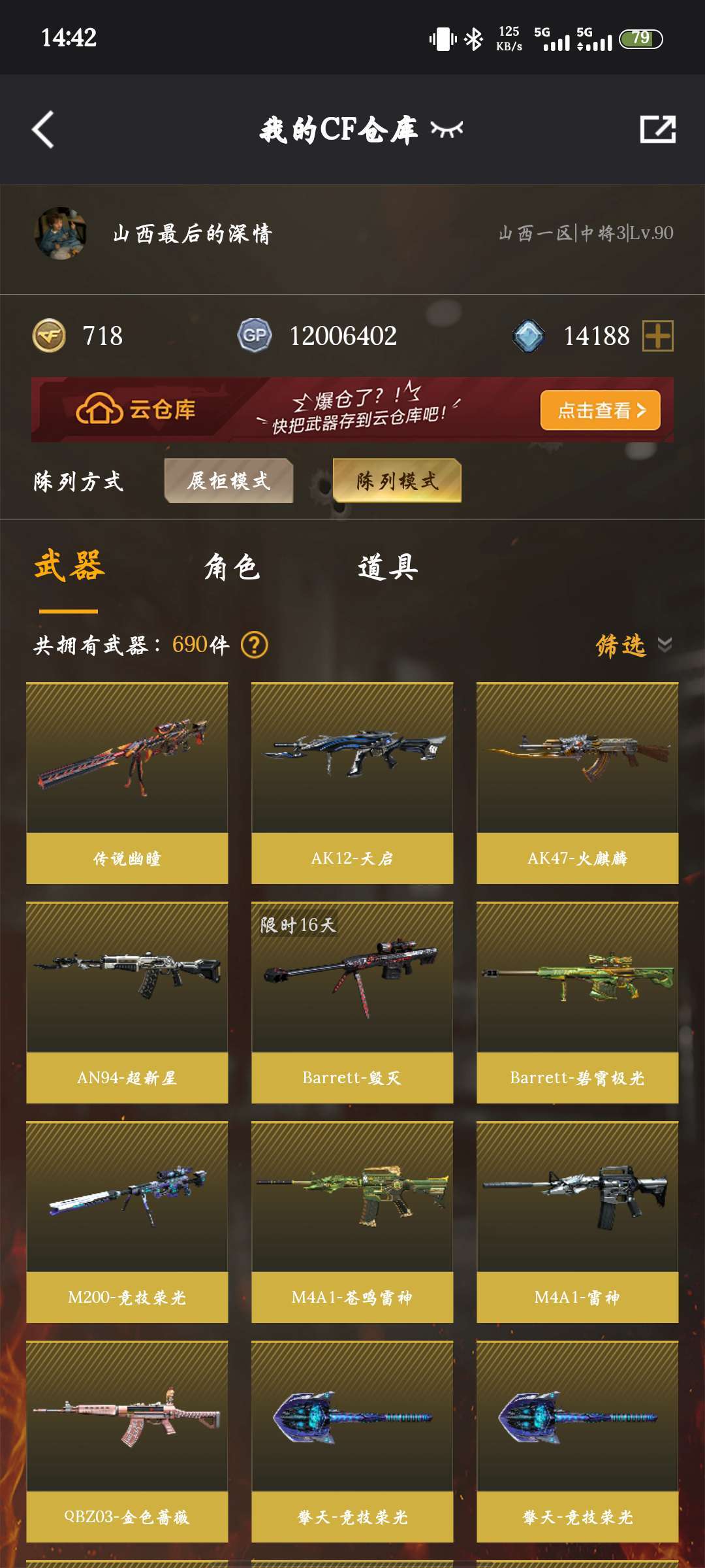 传说幽瞳 传说幻神,竞技荣光,USP ,qbz,金色蔷薇 天启 雷神 超新星 云悠悠,4防。