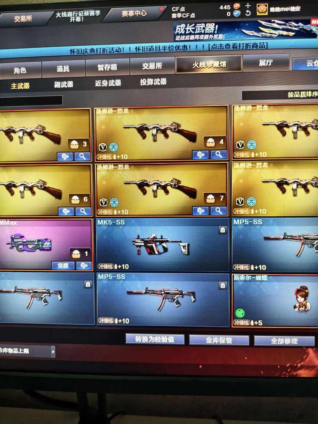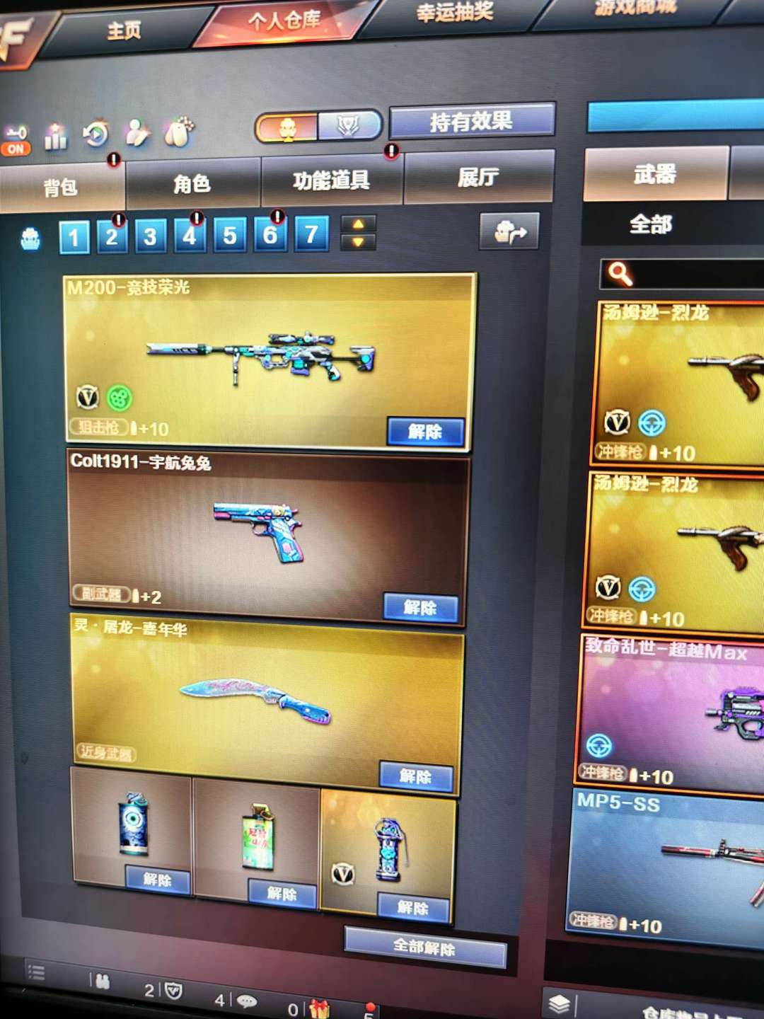 装备描述:6烈龙✨蝴蝶✨m200竞技荣光✨玫瑰精灵✨致命乱世超越max✨裁决毁灭葵✨+樱✨奇洋探员✨计乔伊教练✨修道士云海玲珑转