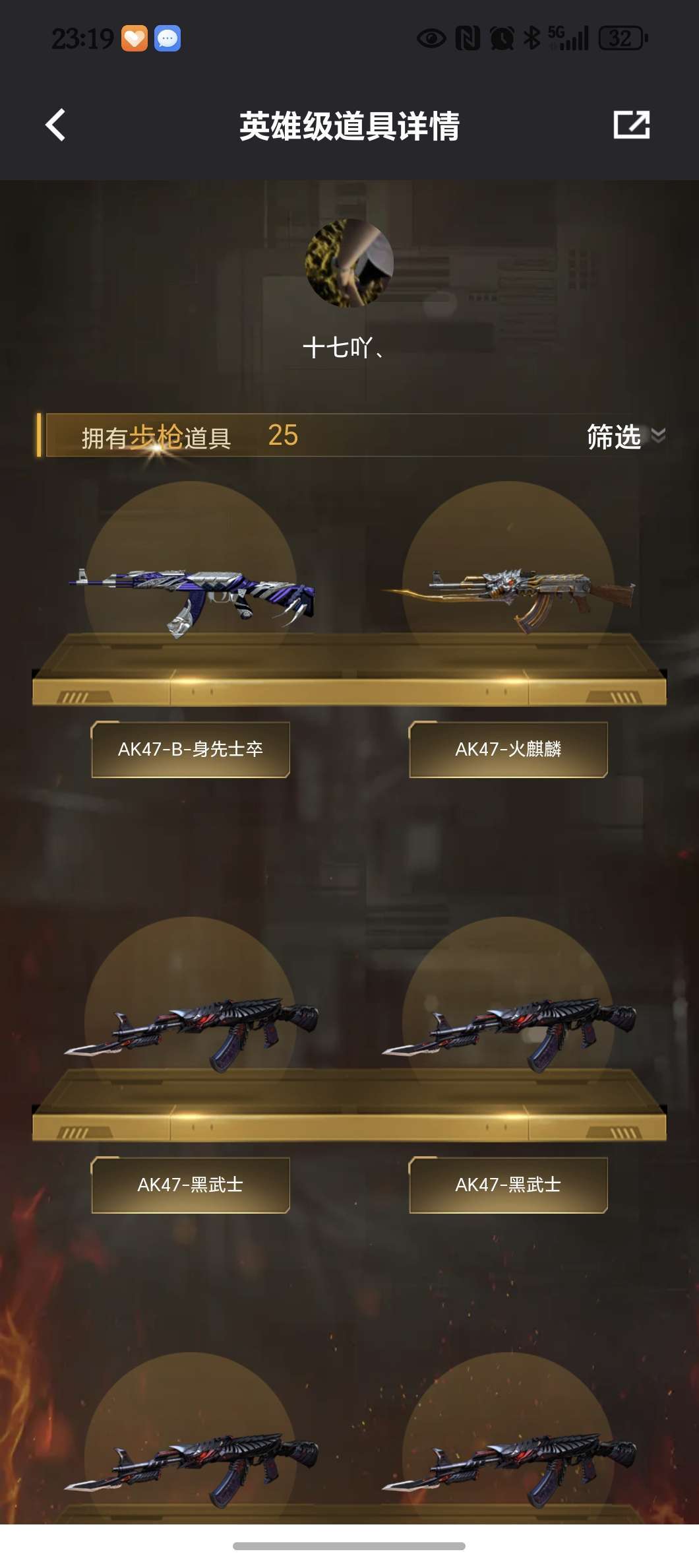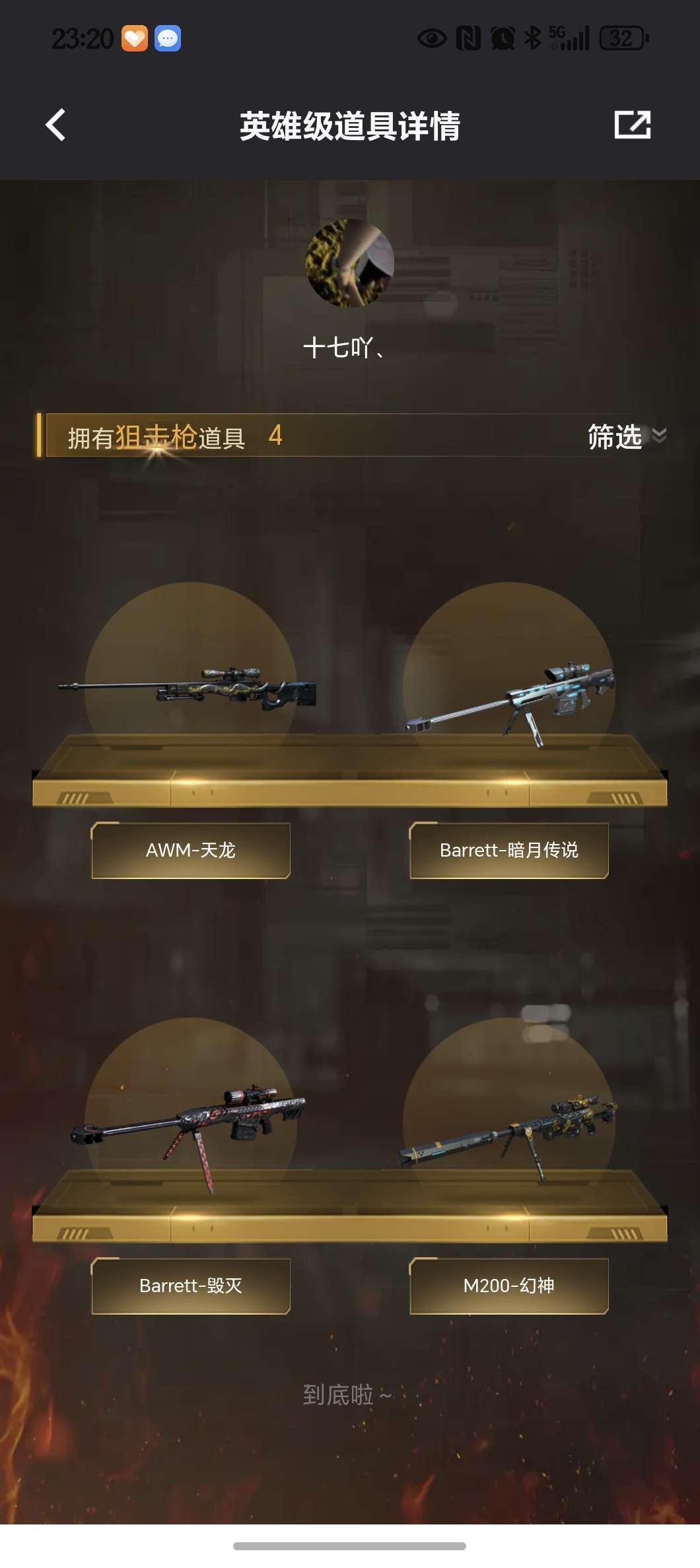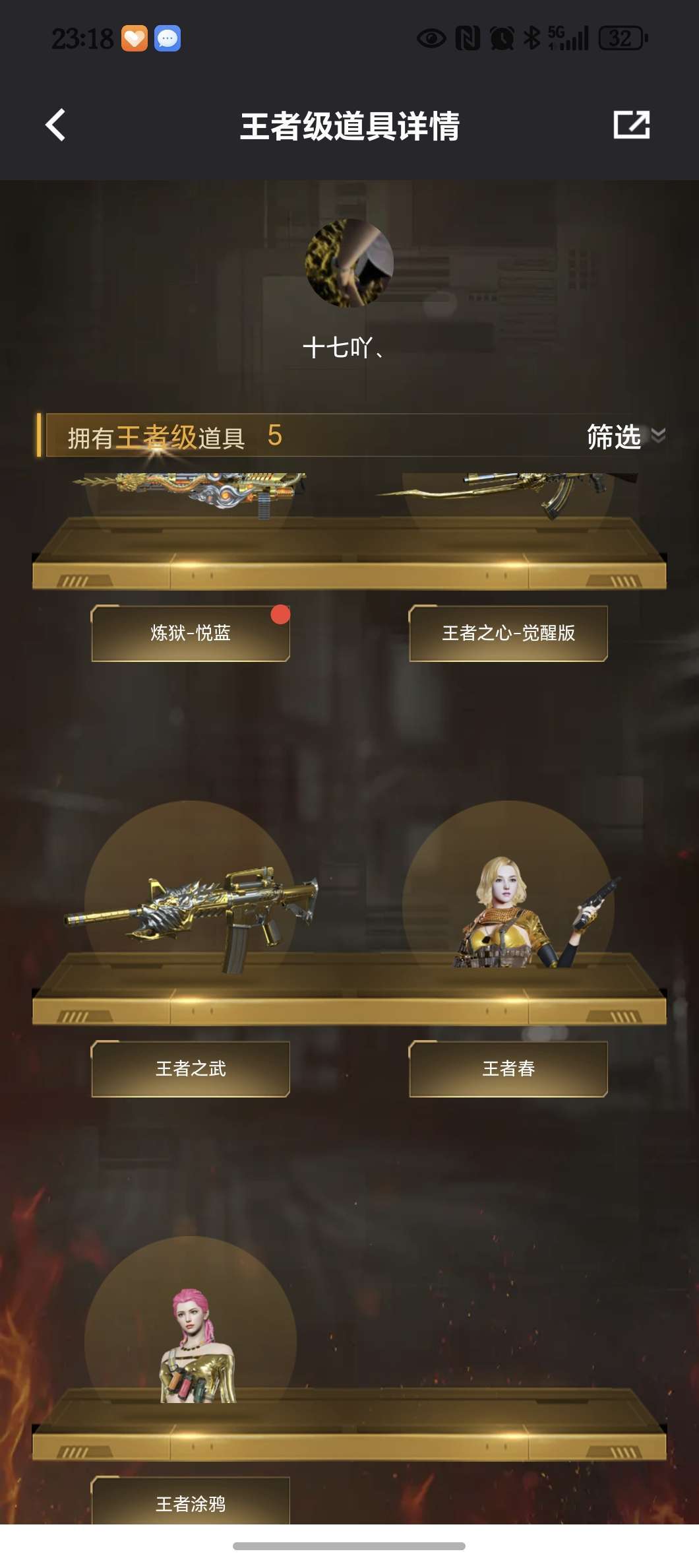 装备描述:幻神/王者之心/冠军之魄/QBZ蔷薇/白虎/雷暴套装USP/王者涂鸦/王者春/AK、M4、毁灭音效卡/AK传奇even、AG/毁灭冠军SV/大红元首等级/多击杀图标