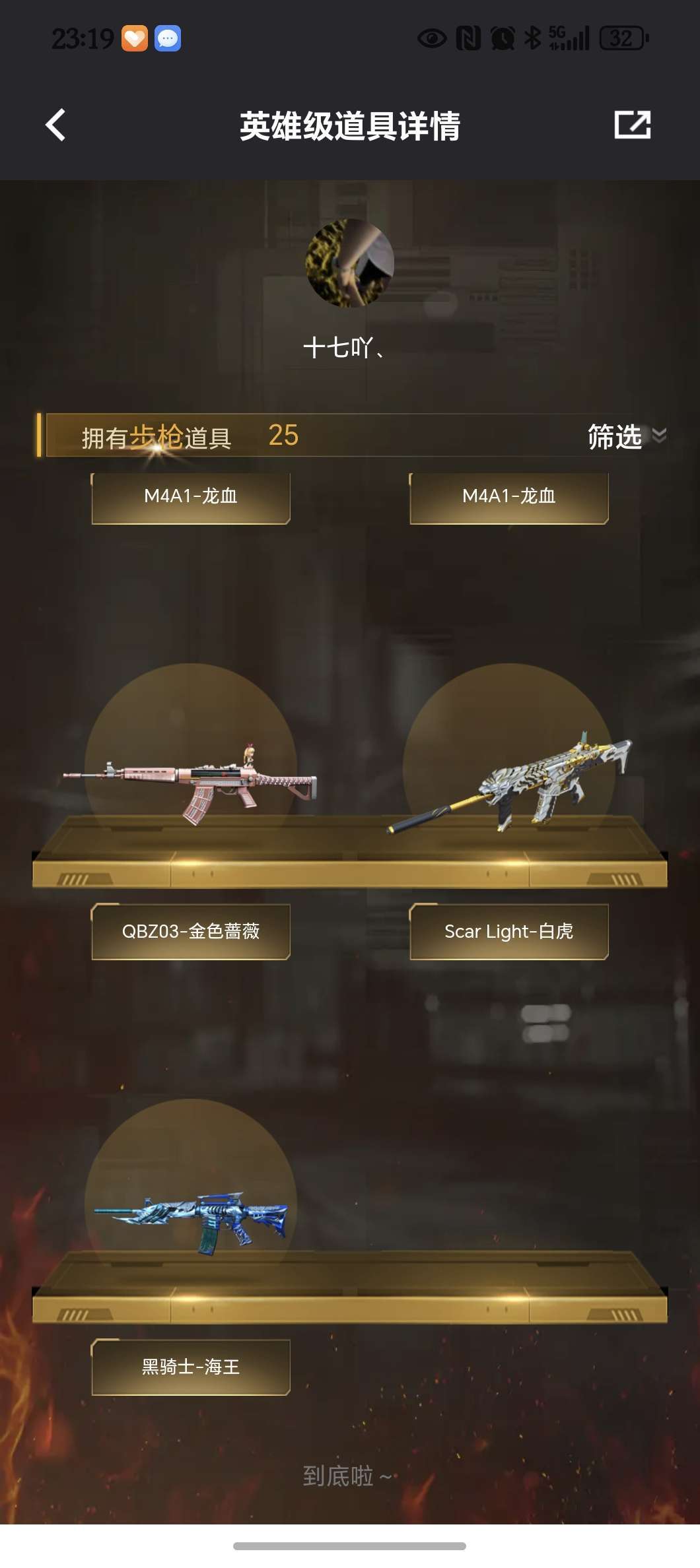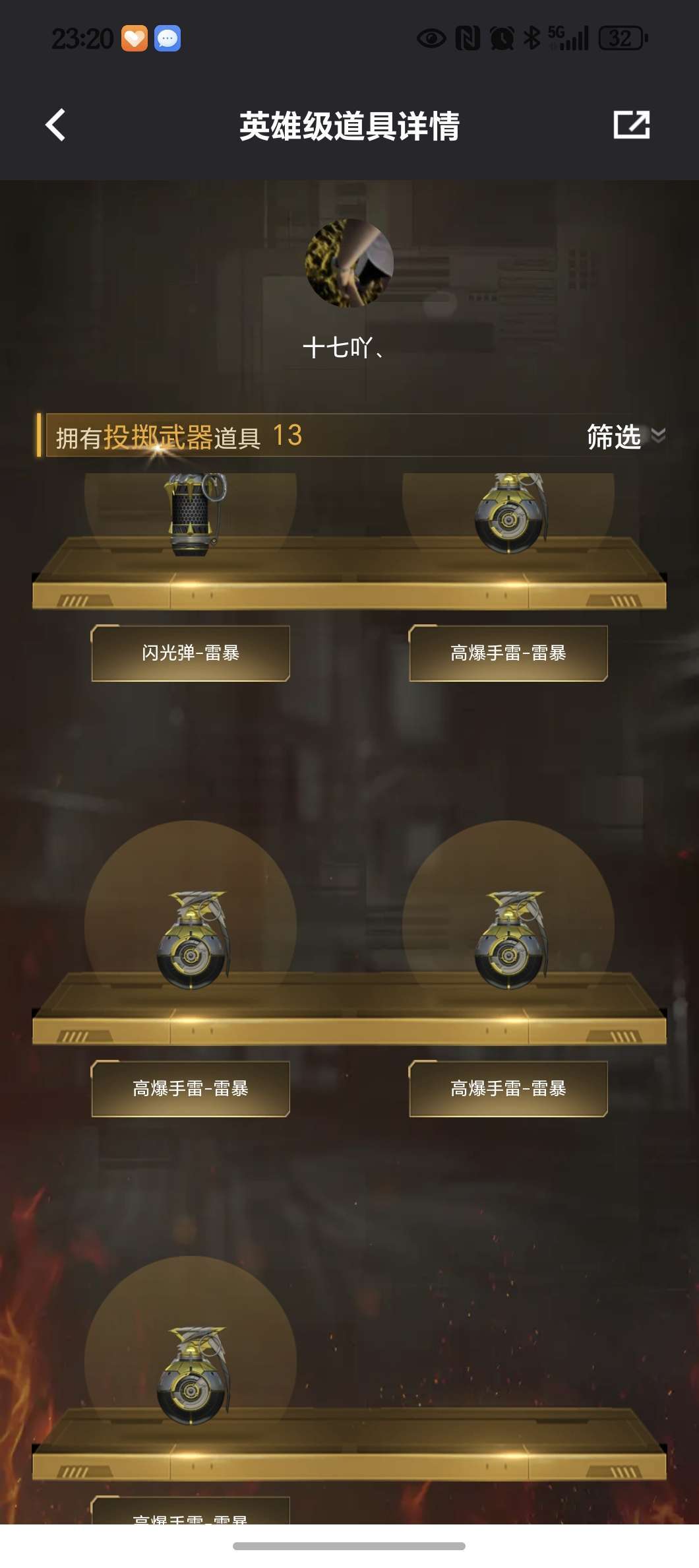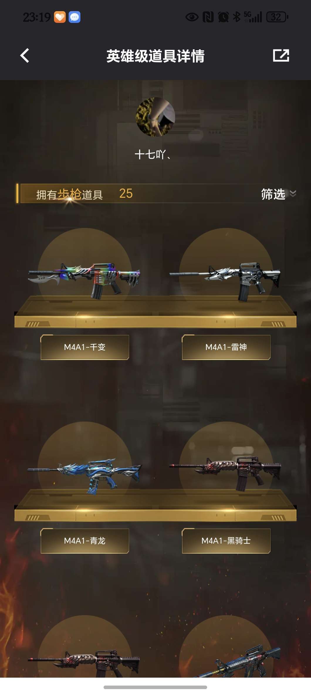 装备描述:幻神/王者之心/冠军之魄/QBZ蔷薇/白虎/雷暴套装USP/王者涂鸦/王者春/AK、M4、毁灭音效卡/AK传奇even、AG/毁灭冠军SV/大红元首等级/多击杀图标