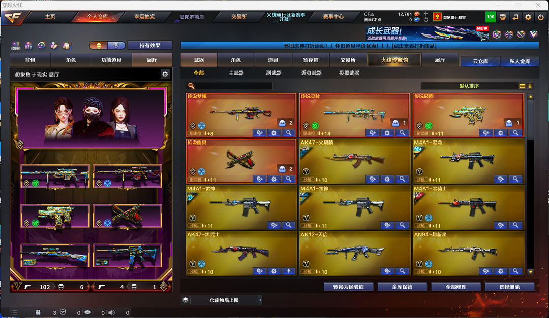 装备描述:传授灵眸破晓幽冥梦魇艾莉莎白虎之魄王者芬薇手枪满配COP柯尔特冠军之特无冕之王神工天巧套装竞技荣光套装云龙套装屠龙皮肤蝴蝶刀黄金猫猫手套白虎马枪雷神三件套十周年臻藏皮肤qbz宠儿皮肤200v手枪手雷满配USP神工天巧