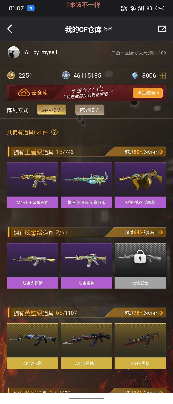 游戏区服:穿越火线-电信区-广西一区