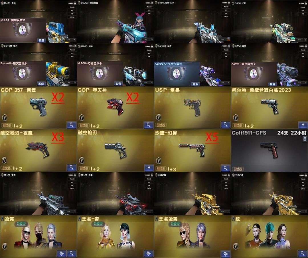 5幻兽对掏号|白鲨动感丹凤5皮幻神音效|璀璨枪娘星神卡|流光5皮裁决卡|荣耀雷神毁灭卡|雷霆暴