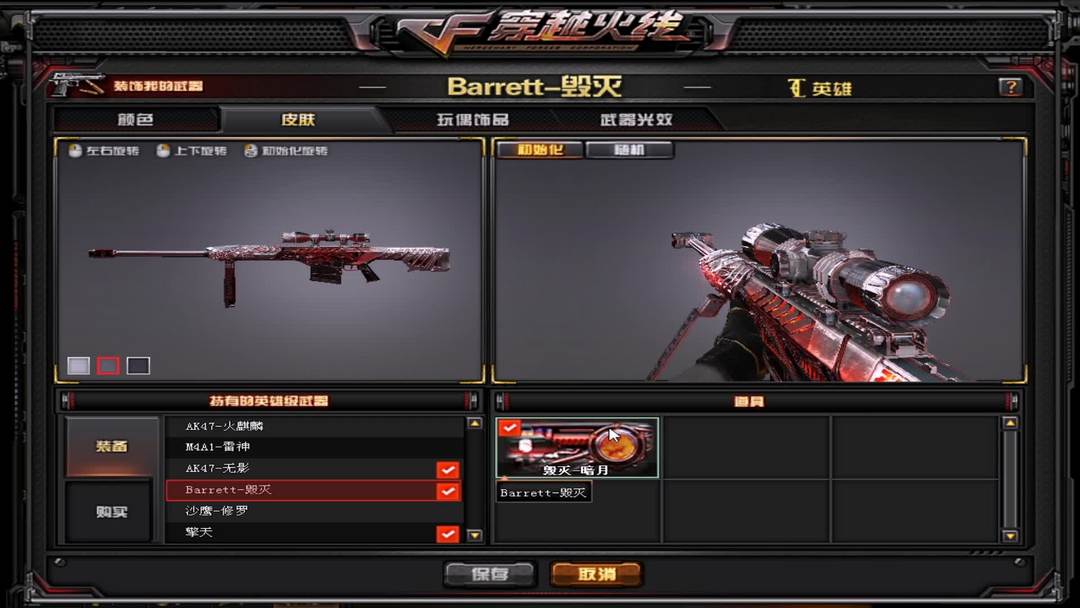装备描述:角色:零;瞳;魅影;春;华;猎狐者;潘多拉;幻影;雷霆-β;复仇者;活力灵狐;兰;王者之瞳;陈龙野-X;新斯沃特-英特尔;娜塔莎;救世主;精英部队;烈锋;灵狐者-黄金海岸;影武者-X;剑齿虎;剑齿虎-X;圣诞潘多拉-X;芳心审判者王者武器:王者森决;炫金骑士;王者冰魄;炫金武士;王者之势;王者之戮-觉醒版;炫金火麒麟;炫金雷神;王者之影;王者之力;王者之势-觉醒版;炫金超新星;烈龙-悦心;炫金千变;王者之锋;炫金黑龙;王者之戮 英雄武器:M4A1-猎神;烟雾弹-云龙;COP 357-云龙;云龙扇;闪光弹-云龙;高爆手雷-云龙;QBZ03-云龙;Barrett-极光;Kar98K-星神;9A91-烈火;汤姆逊-烈龙;M4A1-雷神;AWM-裁决;加特林-炼狱;AK12-天启;沙鹰-天神;AA-12-雷霆;M200-幻神;屠龙;沙鹰-修罗;AK47-黑鲨;AK47-雷暴;USP-雷暴;高爆手雷-雷暴;烟雾弹-雷暴;闪光弹-雷暴;斩神刀-雷暴;AK47-机械迷城;M4A1-黑骑士;AWM-天龙;M4A1-死神;QBZ03-金色蔷薇;擎天;M4A1-玫瑰精灵;M4A1-武圣;AN94-超新星;