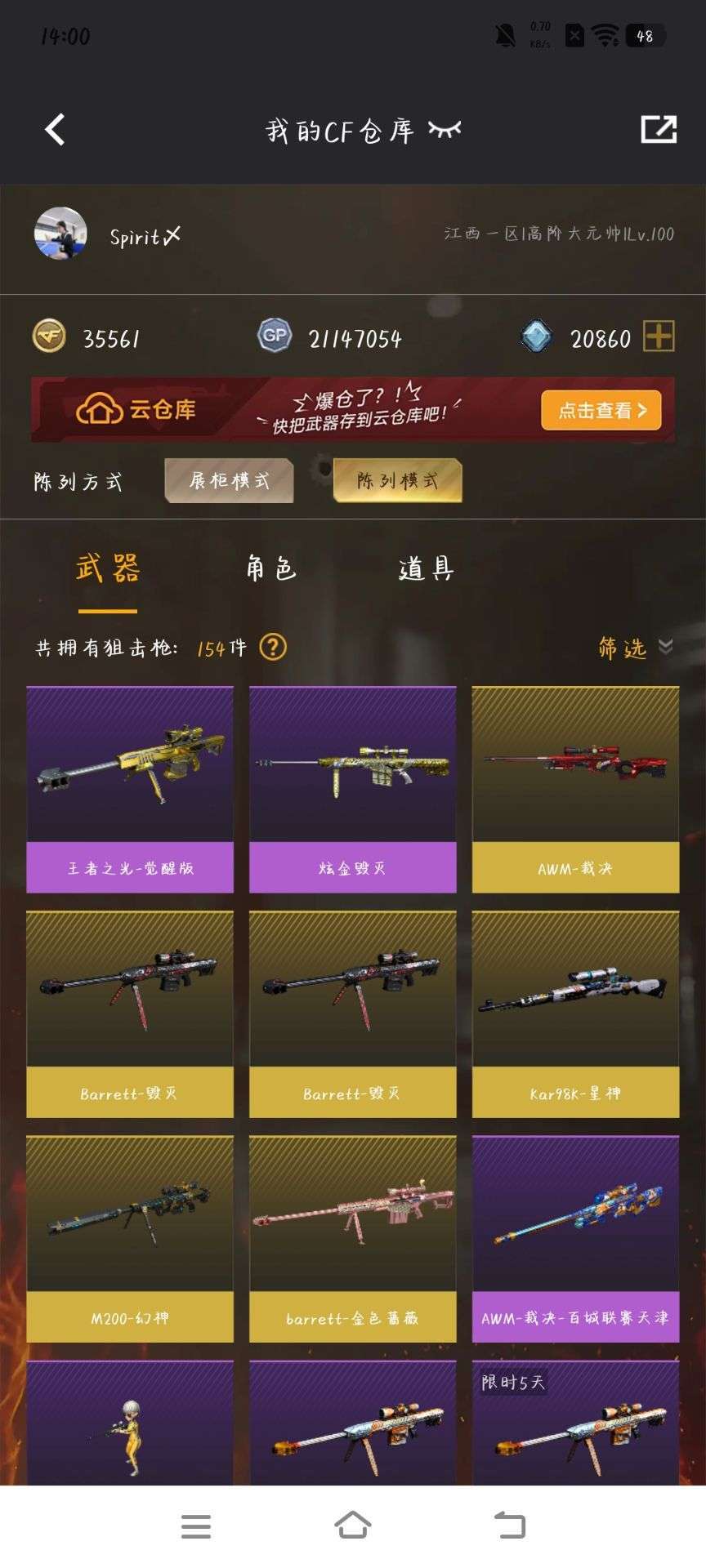 游戏区服:穿越火线-电信区-江西一区