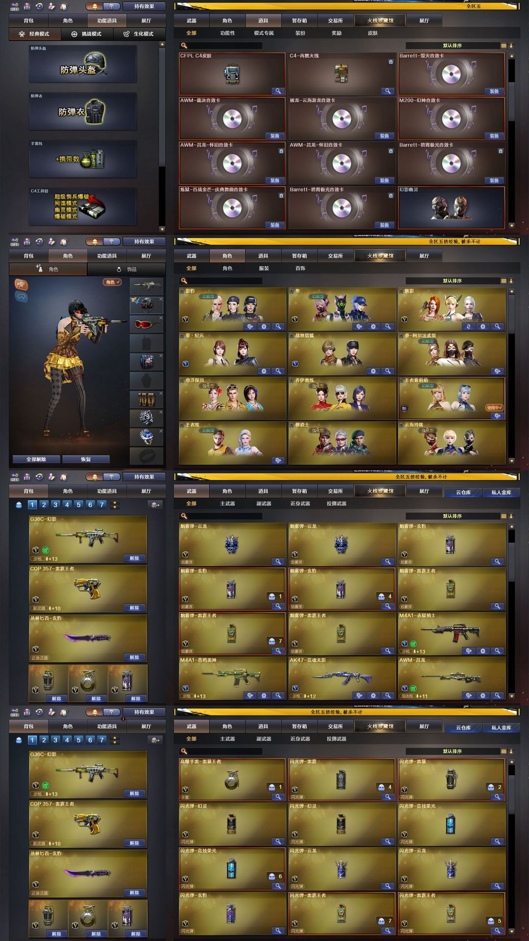 装备描述:幻神音效卡宠儿白鲨皮✨星神裁决3皮带卡✨灵眸G36幻影白虎朱雀蔷薇✨7把COP✨全赛事皮多音效卡 喜欢本账号请点 ☆收藏☆ 方便下次租用,谢谢光临惠顾!