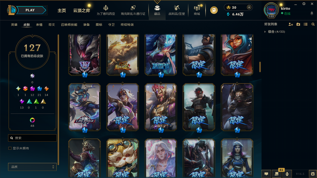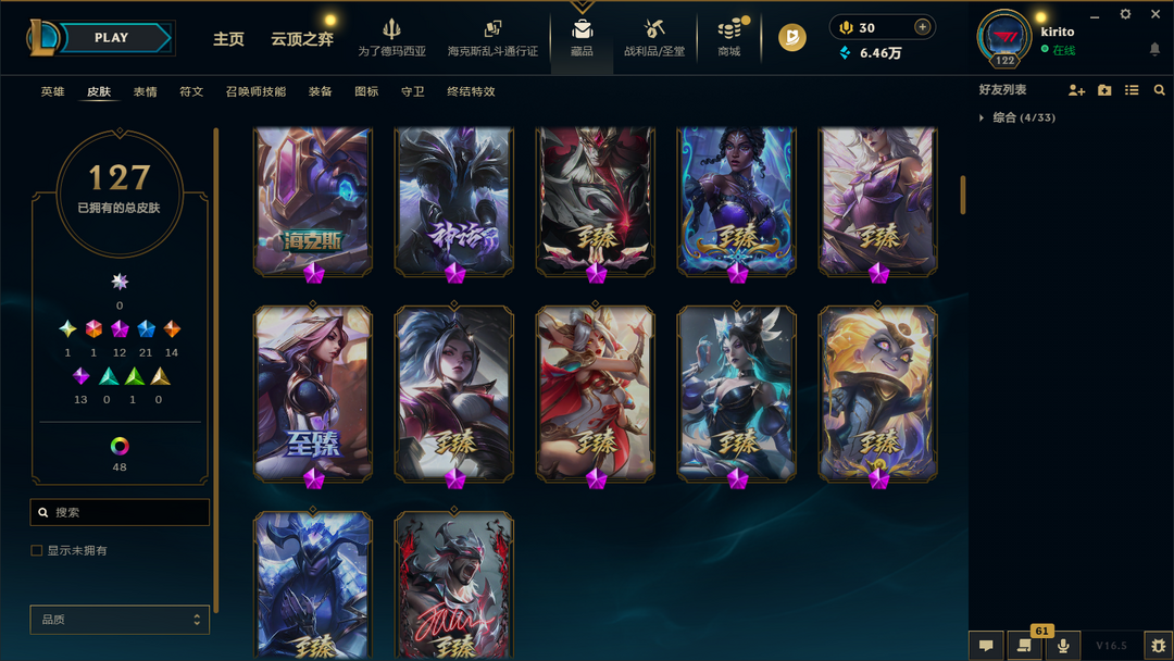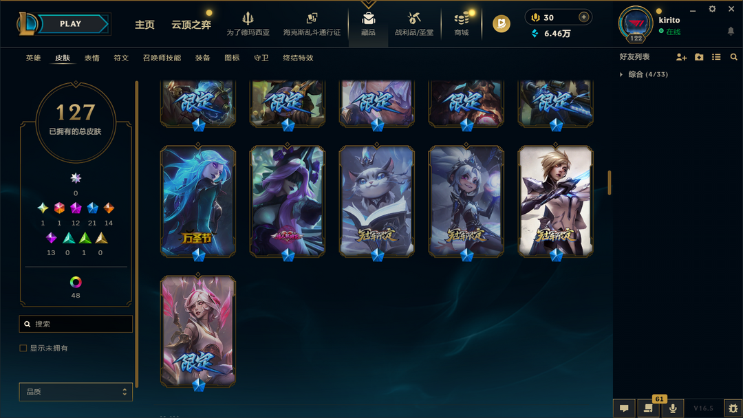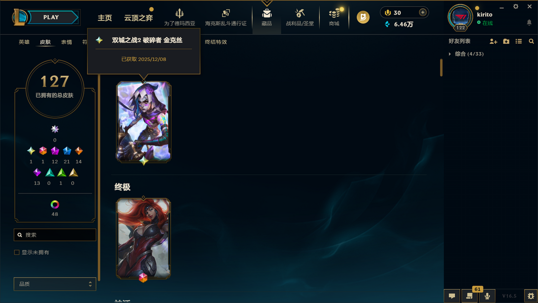 五区可排127皮⚡1760元圣堂款破碎者金克斯⚡22臻彩神话⚡全套ig炫彩faker塞拉斯⚡北极星神