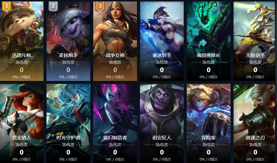 曙光女神;虚空之女;皮城女警;寒冰射手;赏金猎人;暗夜猎手;探险家;黑暗之女;德邦总管;猩红收割者;