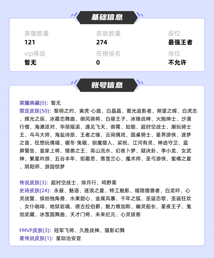 限制: 撤单率<85%才可租用此帐号装备描述:>>>>>>>>毁号,涉及毁坏虚拟财产罪及计算机安全罪,请文明游戏素质游戏,让我们共建美好租号平台>>>>>>>> 无需认证,扫玛上号不是速玩,标题没禁止排位巅峰分够默认允许 禁止到时还登录白玩,恶意扣分广高诈骗等行为,查到一律拉黑不解 【若是协助完还有认证请退款】 【欢迎光临用户请注意以下几条租号事项】 ❶到时间不下结束后还在玩,结束完最后一局打完还玩,拉黑处置!情节严重拉黑送封煞榜 ❷平台严厉打击使用游戏外挂皮肤美化包等非法游戏工具如有发现我们将会上报平台内部技术部门封煞所有账户 IP以及关联账号! ❸禁止游戏挂机逃跑、辱骂、等所有扣分行为! ❹ 禁止恶意毁号退战队重置游戏二级密码! ❺禁止利用账号诈骗送皮肤等非法牟利行为! 【如发现以上违规行为我们必将严惩不怠】 【被拉黑者将无法租我店内所有极品号,严重者将封煞账号锁IP】 最后祝各位玩的开心,生活事业学业更上一层楼 多行不义必自毙,人在做天在看,多做好事少做缺德事 多行不义必自毙,人在做天在看,多做好事少做缺德事 多行不义必自毙,人在做天在看,多做好事少做缺德事 多行不义必自毙,人在做天在看,多做好事少做缺德事