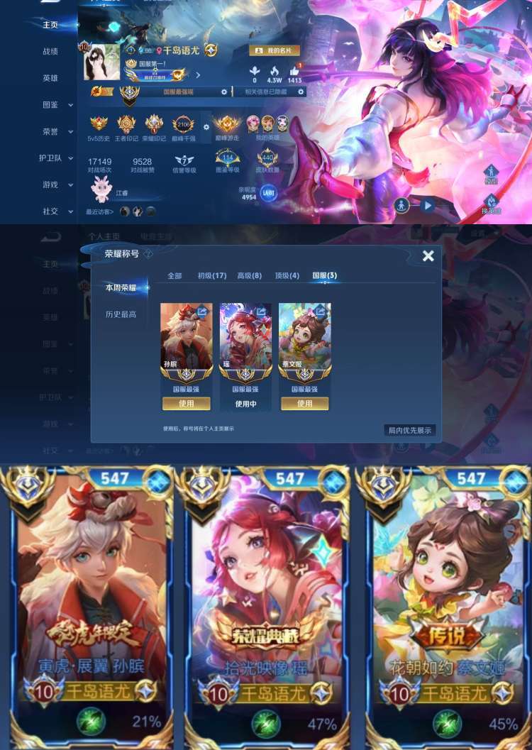 【V10 440皮】巅峰千强547名❤️11月在榜三大国服瑶|大国服孙膑|大国服蔡文姬❤️禁打巅峰