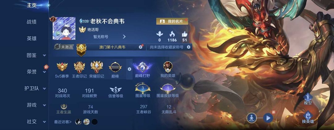 12月正式服在榜省标典韦⭐巅峰2000⭐开黑必备⭐野王男神号⭐带妹必备⭐禁巅峰