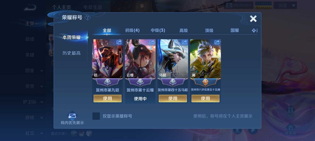 游戏区服:王者荣耀-微信安卓-微信账号