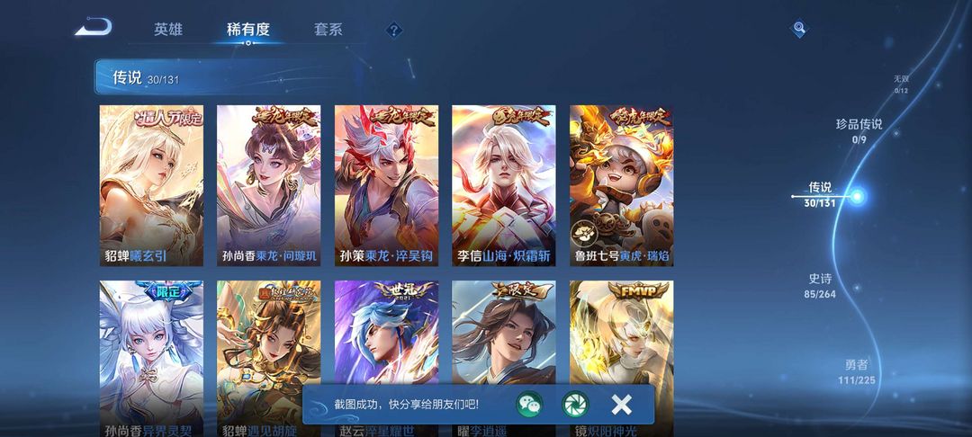 30传说公孙离限定貂蝉珍品传说和荣耀典藏,李白典藏⭐⭐巅峰等等龙年限定皮肤蛇年全皮