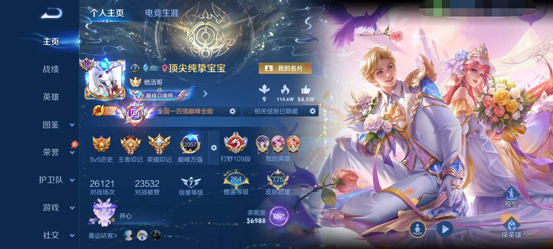 巅峰万强✨在榜109段打野106段中路⚡历史27个大国服瑶大小乔镜虎⚡顶尖漂亮号✨禁巅峰