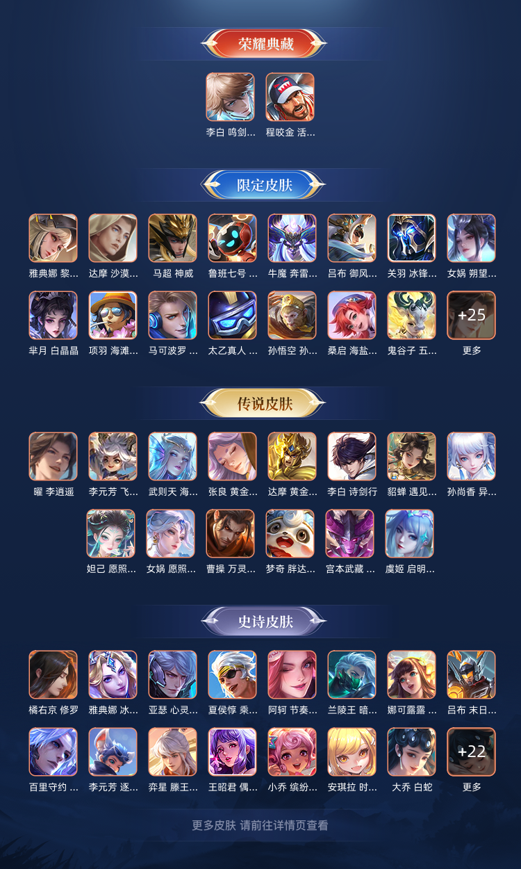 不可排位,李信李白甄姬无双❤李白程咬金典藏❤加上武则天满英雄❤王者段位❤接近400皮肤