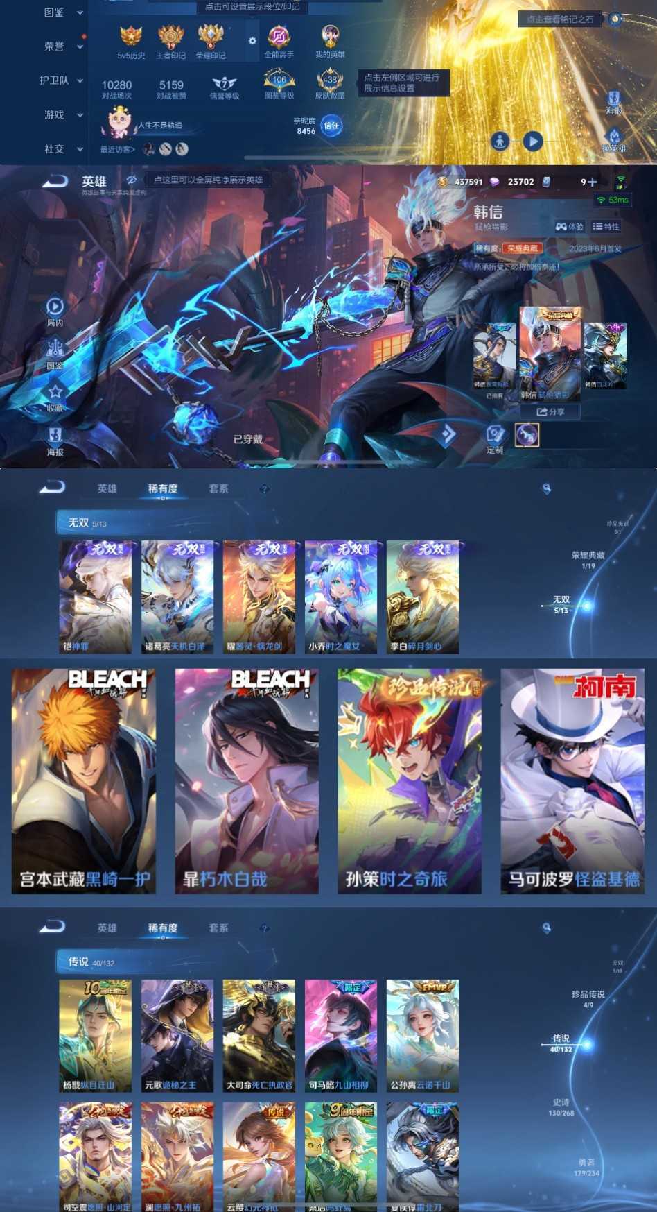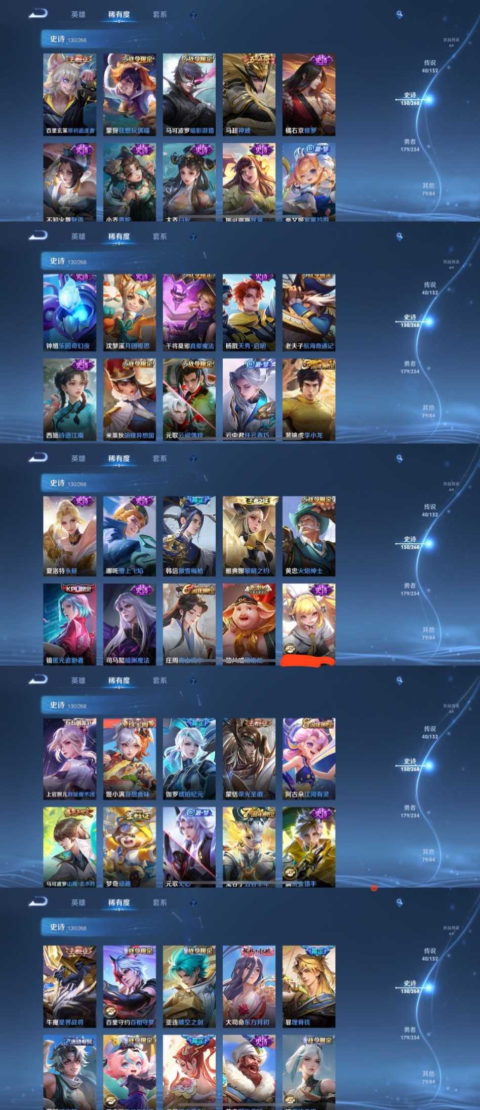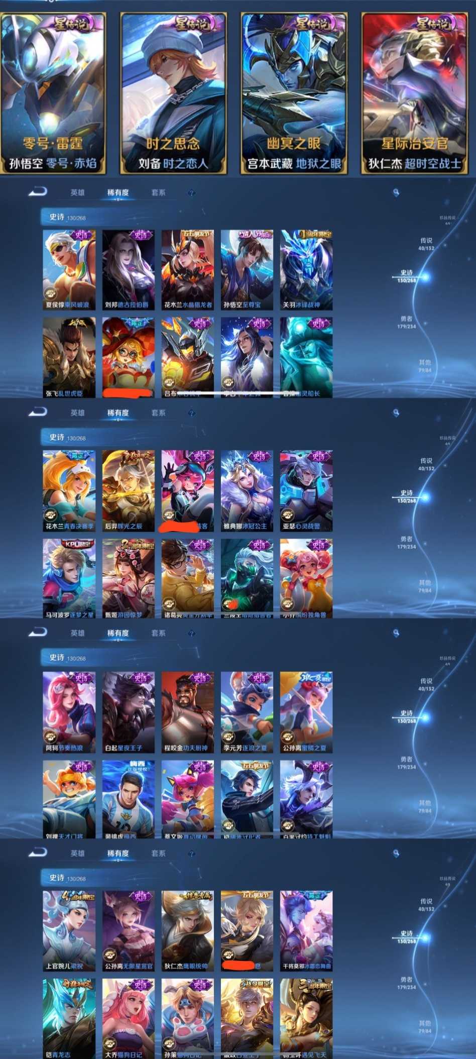 限制: 租号2次及以上 | 撤单率<49%才可租用此帐号装备描述:时间到了还登录白玩或者顶号全部改密拉黑处理永不解除,顶号机器会秒禁玩改密,顶号不仅拉黑还没得玩,赚三两块不容易,请理解谢谢。 ❤❤❤❤❤❤❤❤❤❤❤❤❤❤❤ 请勿开挂,挂机,送头,骂人,撤单后游戏等如有违规永久拉黑永不解除。重置二级密码不要费劲了,号主每天都会上号查看,多行不义必自毙,人在做天在看,多做好事多自律,少做缺德事。 该号英雄128个皮肤450个,典藏1个,无双6个,珍品传说4个,星传说4个,传说41个,史诗130个,祝你游戏愉快~