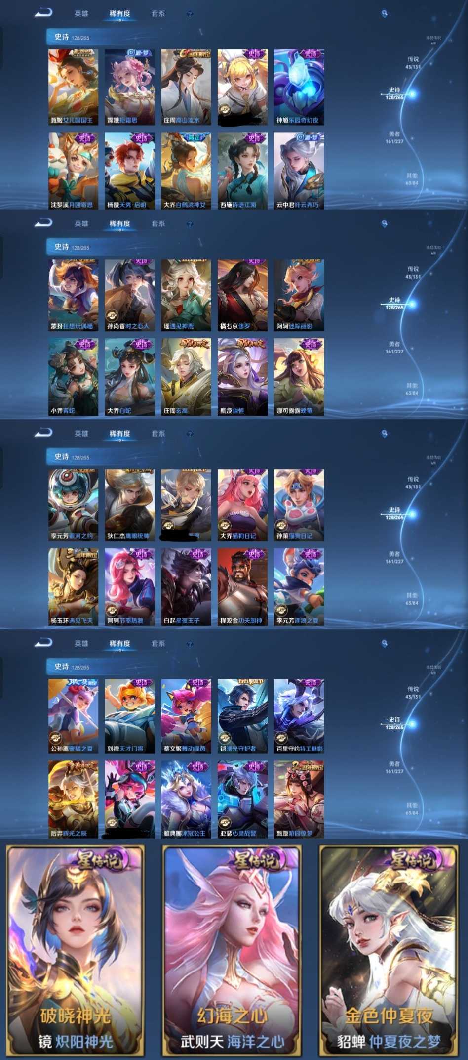 限制: 租号1次及以上 | 撤单率<49%才可租用此帐号装备描述:时间到了还登录白玩或者顶号全部改密拉黑处理永不解除,顶号机器会秒禁玩改密,顶号不仅拉黑还没得玩,赚三两块不容易,请理解谢谢。 ❤❤❤❤❤❤❤❤❤❤❤❤❤❤❤❤❤❤❤ 请勿开挂,挂机,送头,骂人,撤单后游戏等如有违规永久拉黑永不解除。 重置二级密码不要费劲了,号主每天都会上号查看,多行不义必自毙,人在做天在看,多做好事多自律,少做缺德事。 该号英雄128个皮肤409个,典藏4个,无双5个,珍品传说6个,星传说3个,传说43个,史诗128个,祝您游戏愉快~