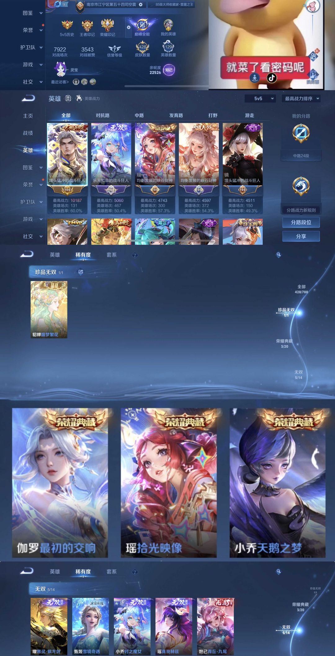 限制: 租号2次及以上 | 撤单率<49%才可租用此帐号装备描述:时间到了还登录白玩或者顶号全部改密拉黑处理永不解除,顶号机器会秒禁玩改密,顶号不仅拉黑还没得玩,赚三两块不容易,请理解谢谢。 ❤❤❤❤❤❤❤❤❤❤❤❤❤❤❤❤❤❤❤ 请勿开挂,挂机,送头,骂人,撤单后游戏等如有违规永久拉黑永不解除。 重置二级密码不要费劲了,号主每天都会上号查看,多行不义必自毙,人在做天在看,多做好事多自律,少做缺德事。 该号英雄129个皮肤428个,珍品无双1个,典藏3个,无双5个,珍品传说5个,星传说1个,传说49个,史诗146个,祝您游戏愉快~
