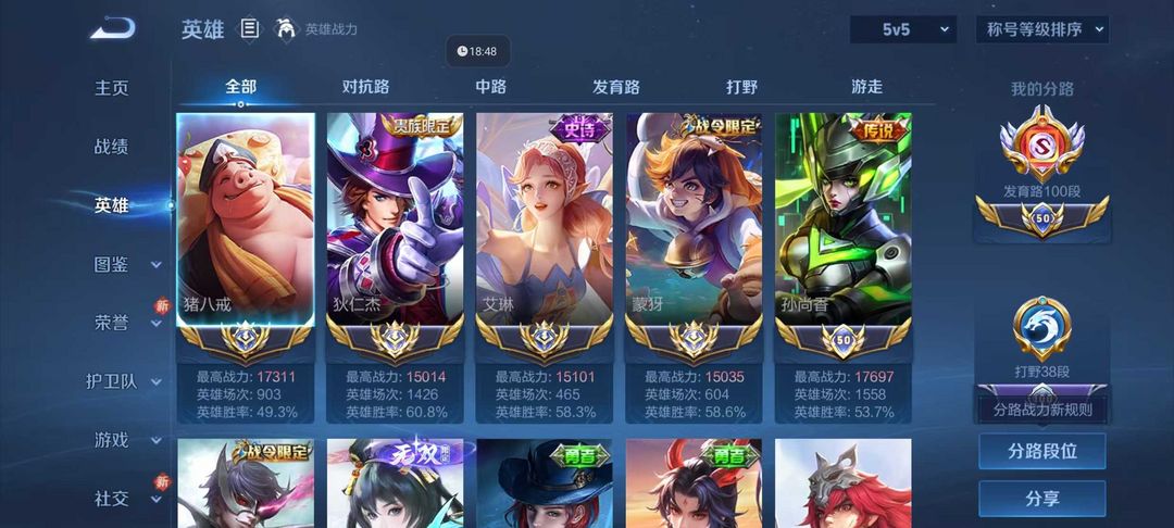 巅峰开⭐100段小国标发育路⭐1.7w战力国服猪八戒⭐1.5w战力国服狄仁杰艾琳蒙犽⭐历史多发育小国
