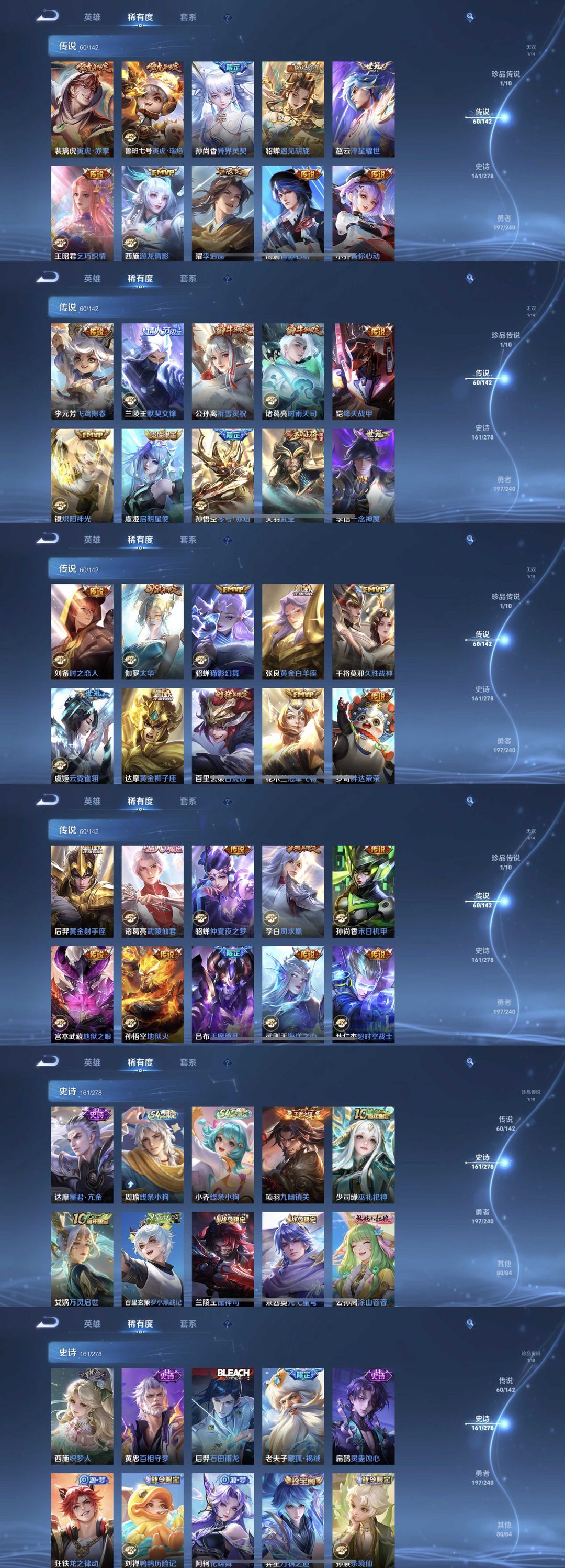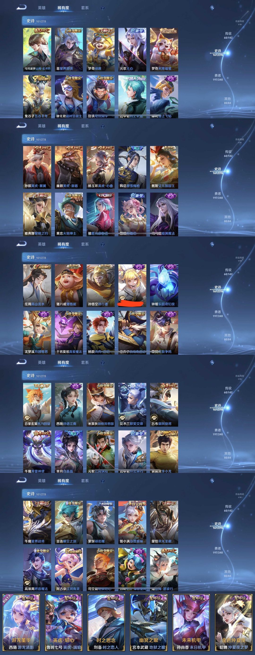 限制: 租号2次及以上 | 撤单率<49%才可租用此帐号装备描述:时间到了还登录白玩或者顶号全部改密拉黑处理永不解除,顶号机器会秒禁玩改密,顶号不仅拉黑还没得玩,赚三两块不容易,请理解谢谢。 ❤❤❤❤❤❤❤❤❤❤❤❤❤❤❤ 请勿开挂,挂机,送头,骂人,撤单后游戏等如有违规永久拉黑永不解除。 重置二级密码不要费劲了,号主每天都会上号查看,多行不义必自毙,人在做天在看,多做好事多自律,少做缺德事。 该号英雄130个皮肤508个,典藏9个,无双1个,珍品传说1个,星传说6个,传说60个,史诗161个,祝你游戏愉快~