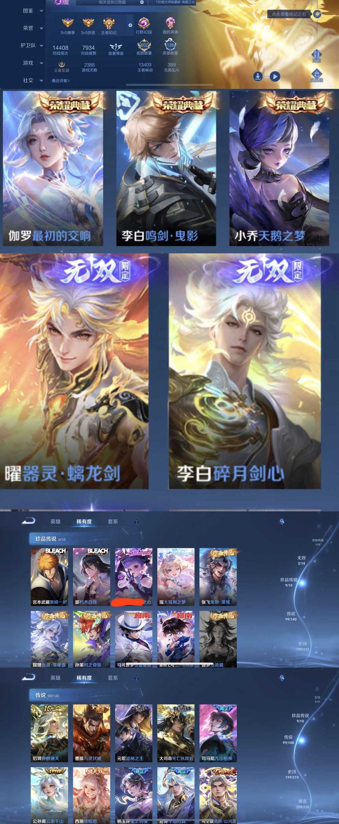 限制: 租号2次及以上 | 撤单率<49%才可租用此帐号装备描述:时间到了还登录白玩或者顶号全部改密拉黑处理永不解除,顶号机器会秒禁玩改密,顶号不仅拉黑还没得玩,赚三两块不容易,请理解谢谢。 ❤❤❤❤❤❤❤❤❤❤❤❤❤❤❤ 请勿开挂,挂机,送头,骂人,撤单后游戏等如有违规永久拉黑永不解除。 重置二级密码不要费劲了,号主每天都会上号查看,多行不义必自毙,人在做天在看,多做好事多自律,少做缺德事。 该号英雄128个皮肤602个,典藏4个,无双2个,珍品传说9个,星传说7个,传说99个,史诗199个,祝你游戏愉快~