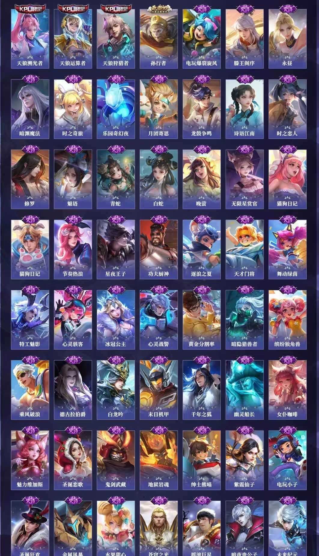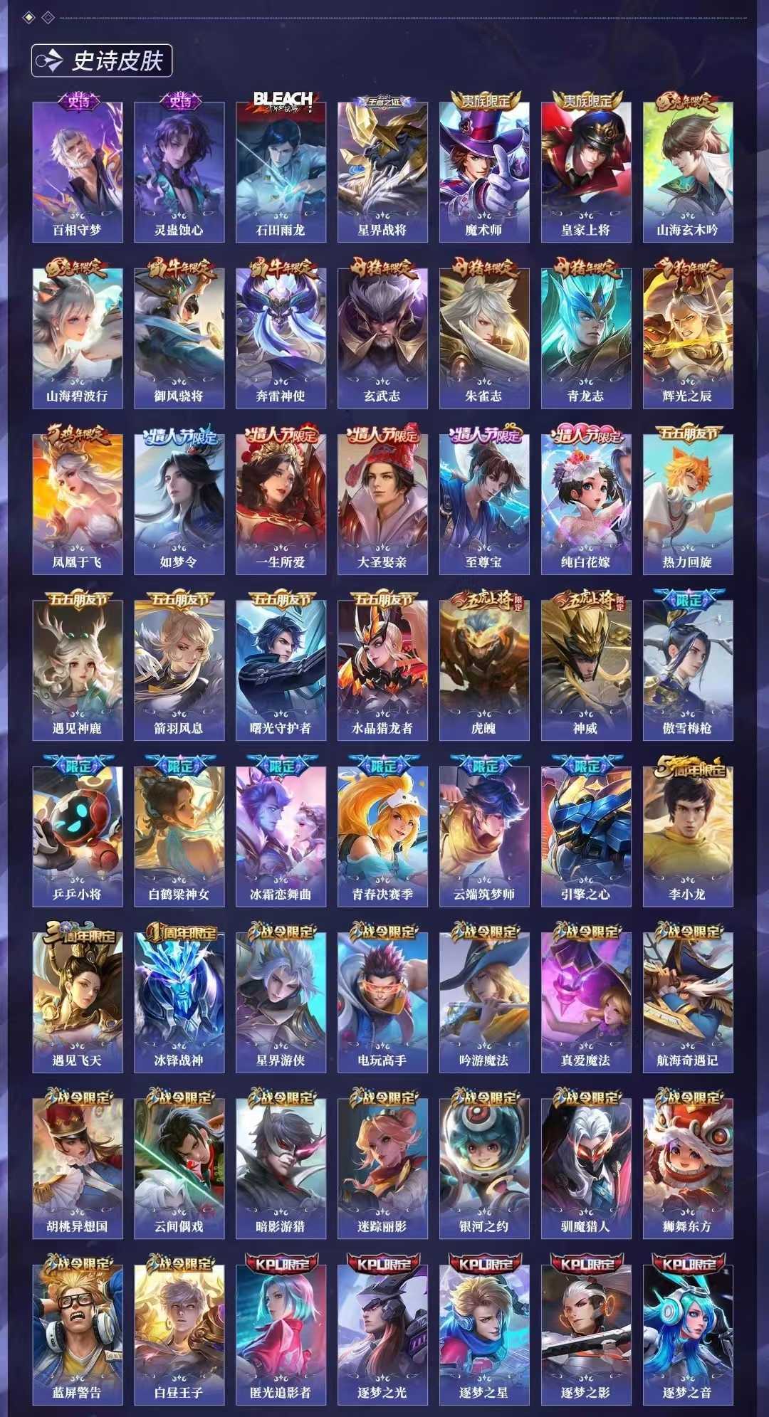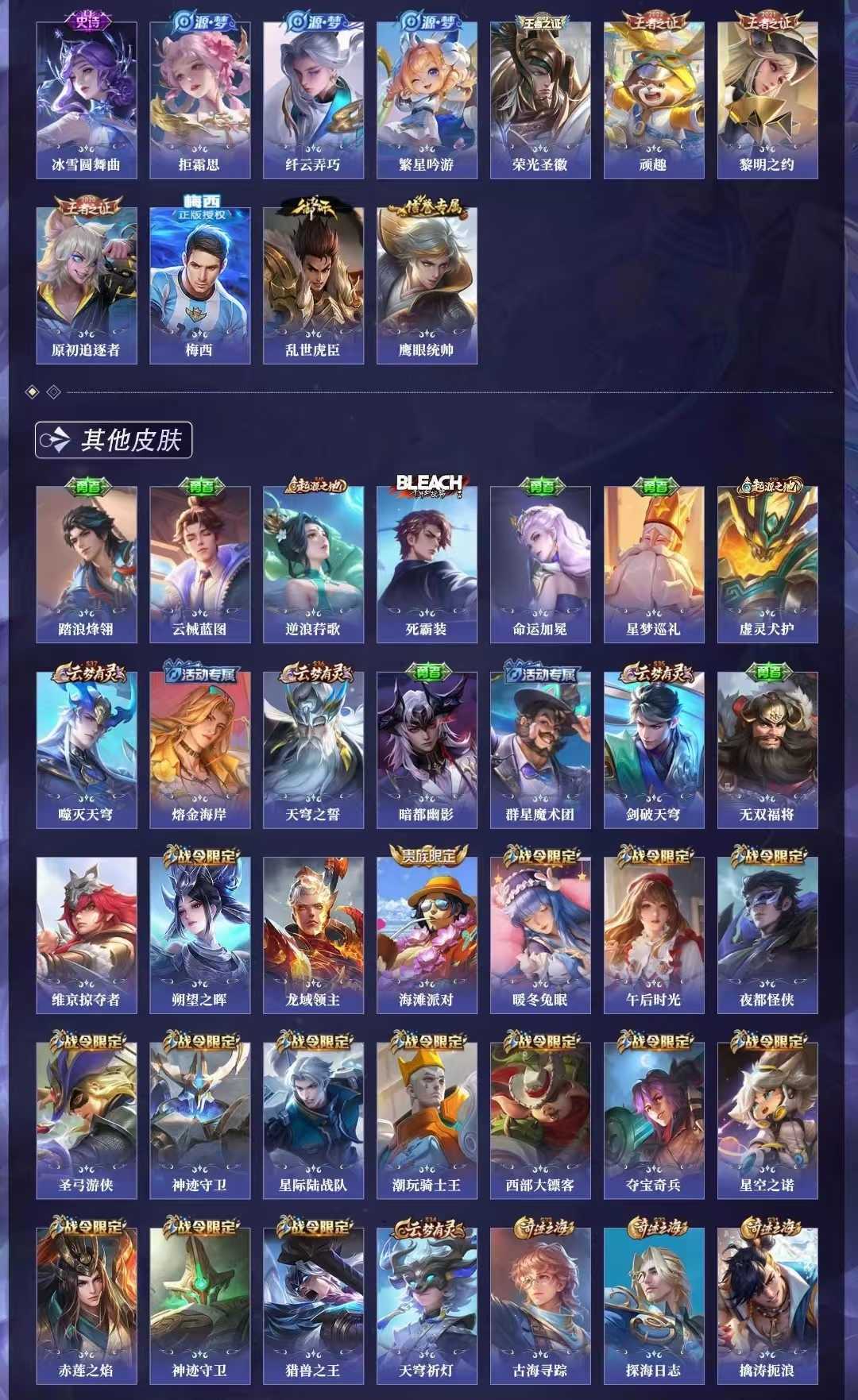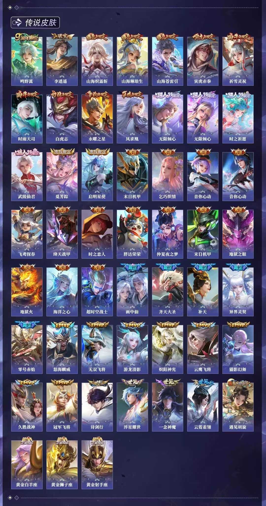 【C47】贵族V10~404皮8典藏52传说无双飞将,神威,瑶时之祈愿,祈雪灵祝,至尊宝,梅西,白虎