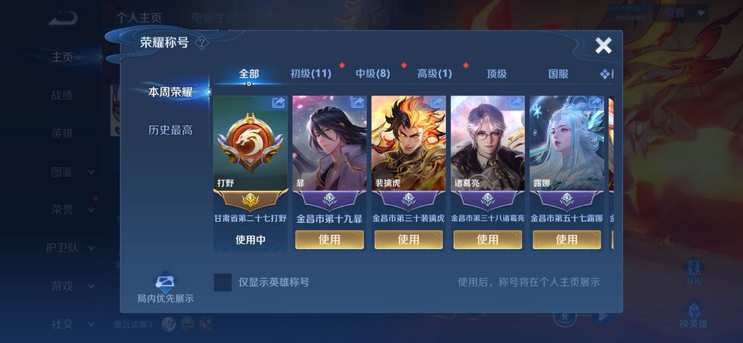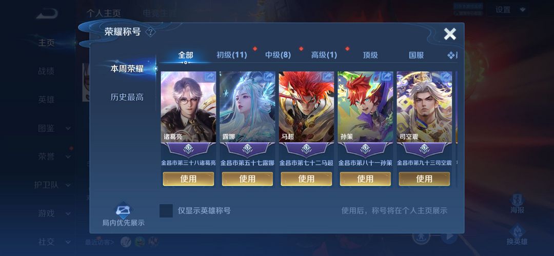 高危无法排位匹配巅峰//83段打野在榜省标多在榜⚡️国服暃孙策云缨⭐️朽木白哉星域神启⭐️可娱乐模式