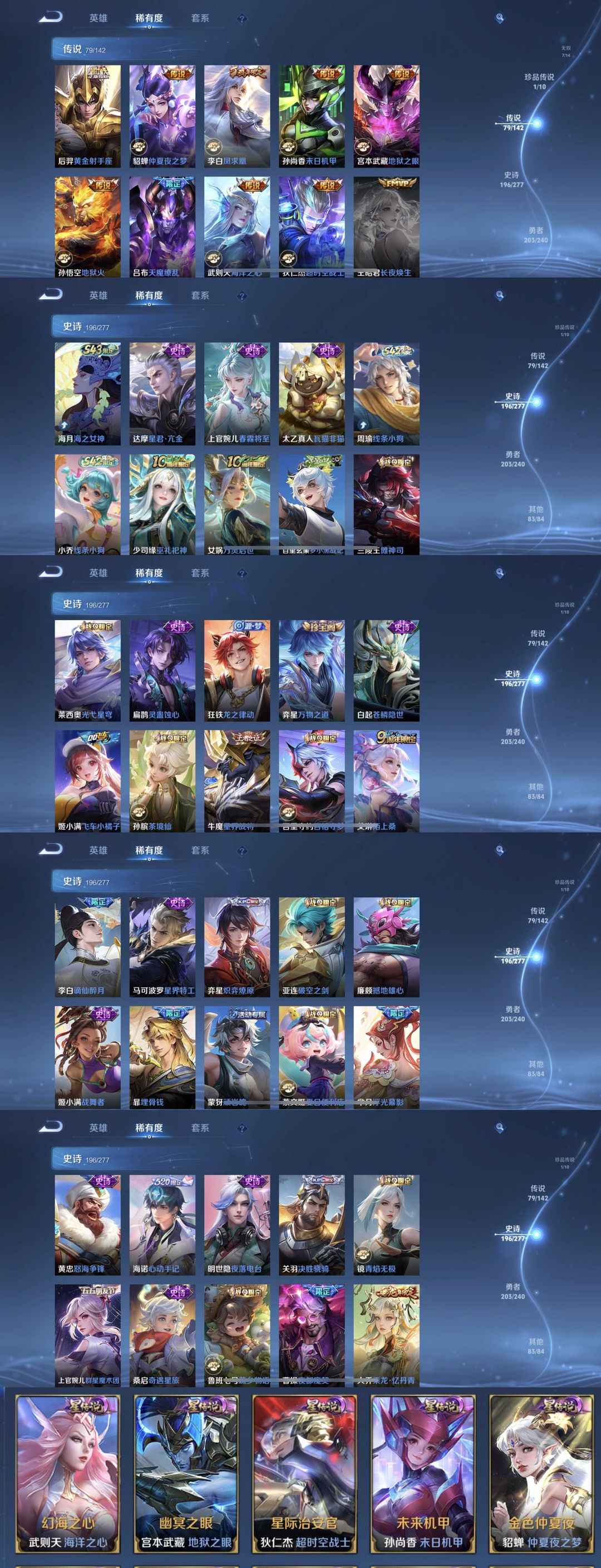 限制: 租号2次及以上 | 撤单率<49%才可租用此帐号装备描述:时间到了还登录白玩或者顶号全部改密拉黑处理永不解除,顶号机器会秒禁玩改密,顶号不仅拉黑还没得玩,赚三两块不容易,请理解谢谢。 ❤❤❤❤❤❤❤❤❤❤❤❤❤❤❤❤❤❤ 请勿开挂,挂机,送头,骂人,撤单后游戏等如有违规永久拉黑永不解除。 重置二级密码不要费劲了,号主每天都会上号查看,多行不义必自毙,人在做天在看,多做好事多自律,少做缺德事。 该号英雄130个皮肤583个,典藏15个,无双7个,珍品传说1个,星传说5个,传说79个,史诗196个,祝你游戏愉快
