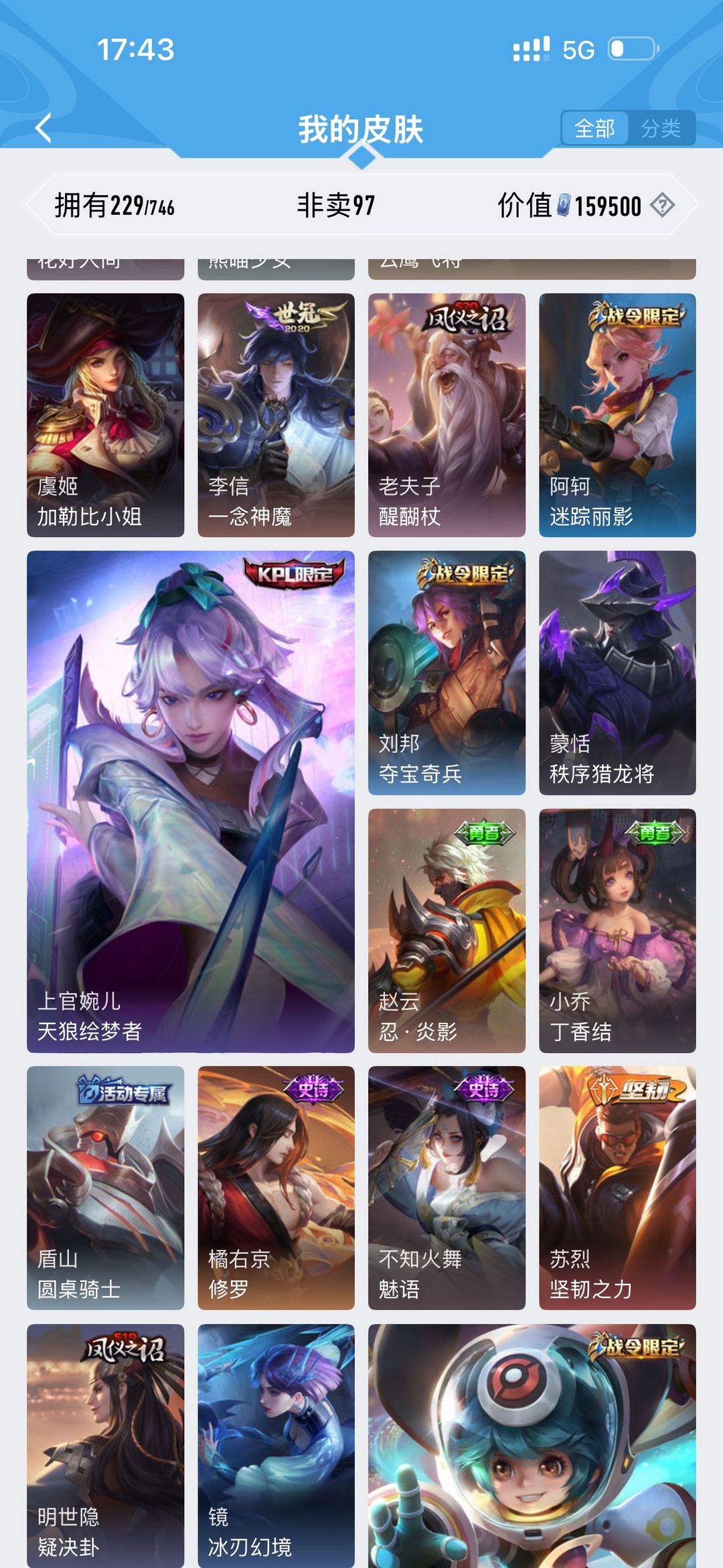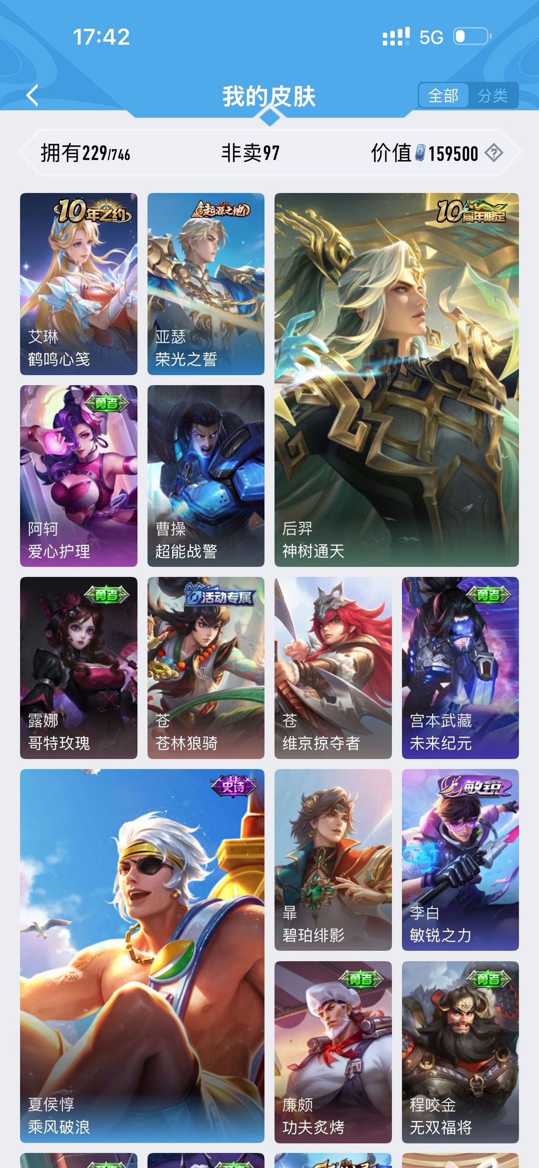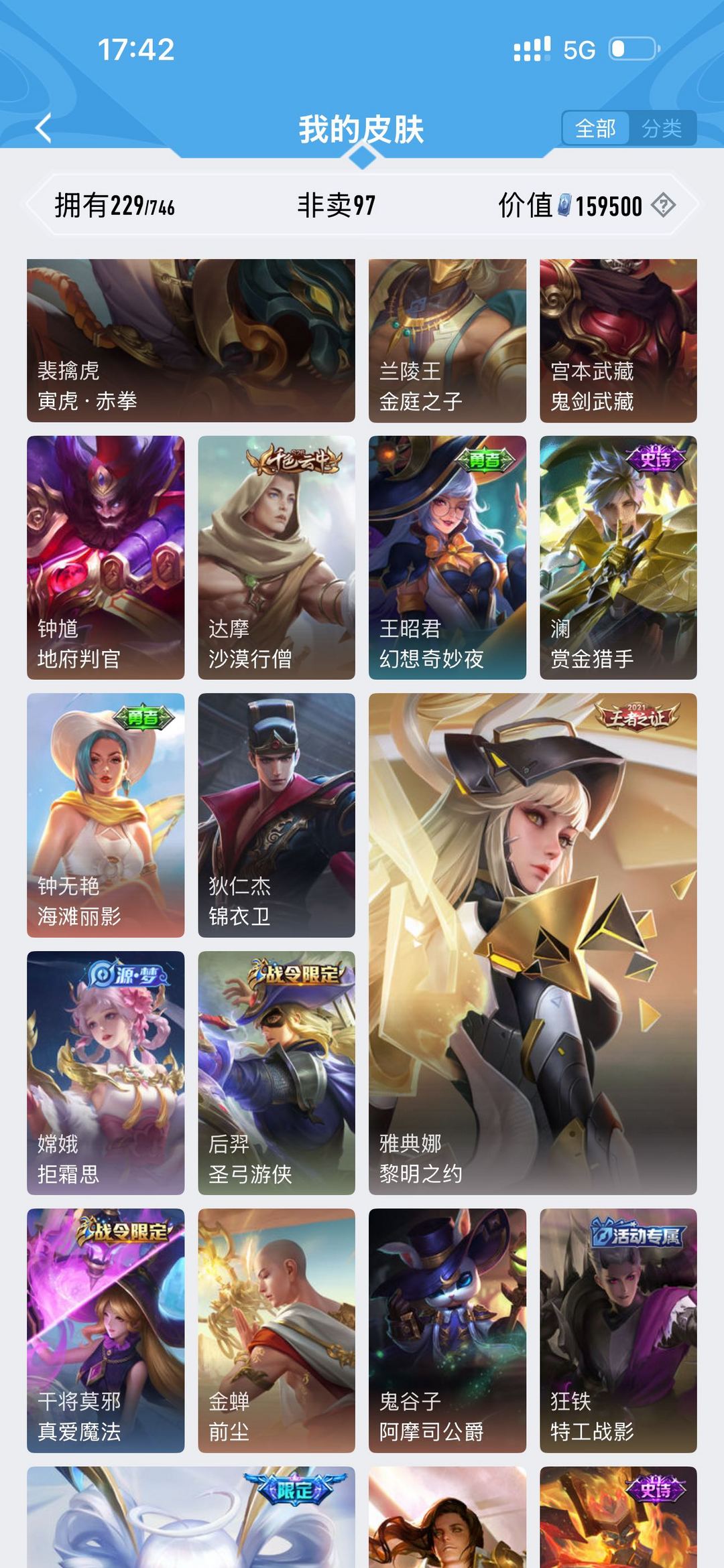 230皮肤 满铭文 可排位 满英雄星耀可带妹