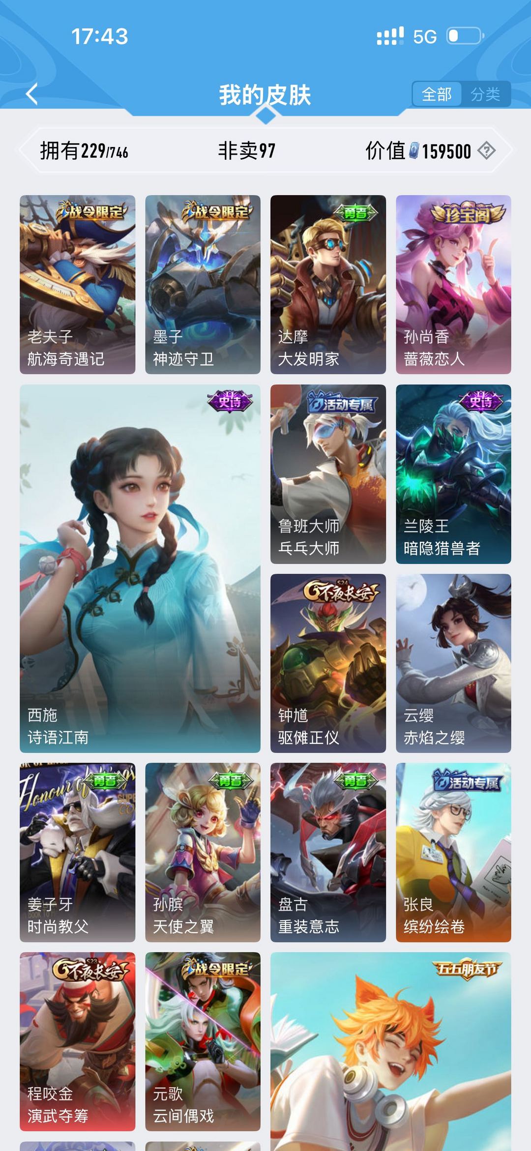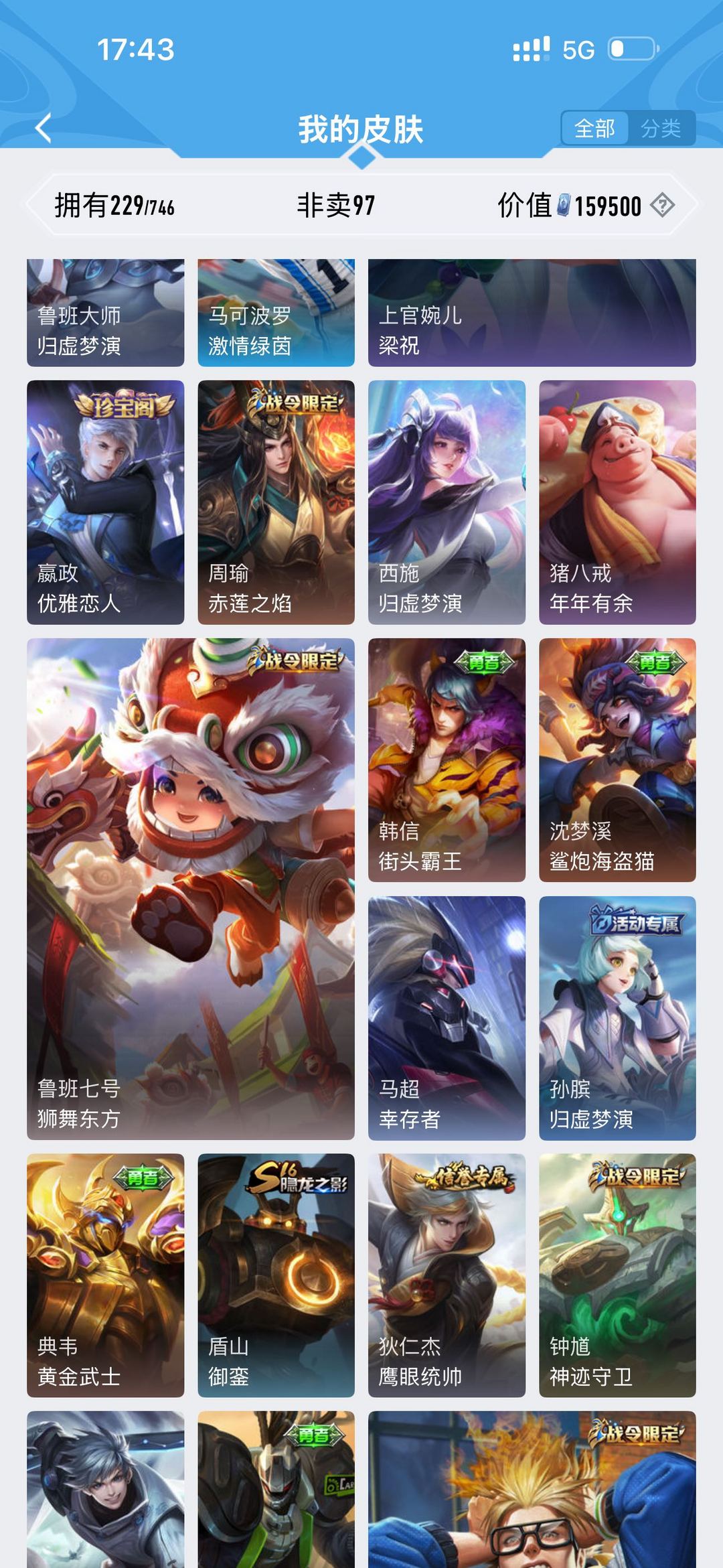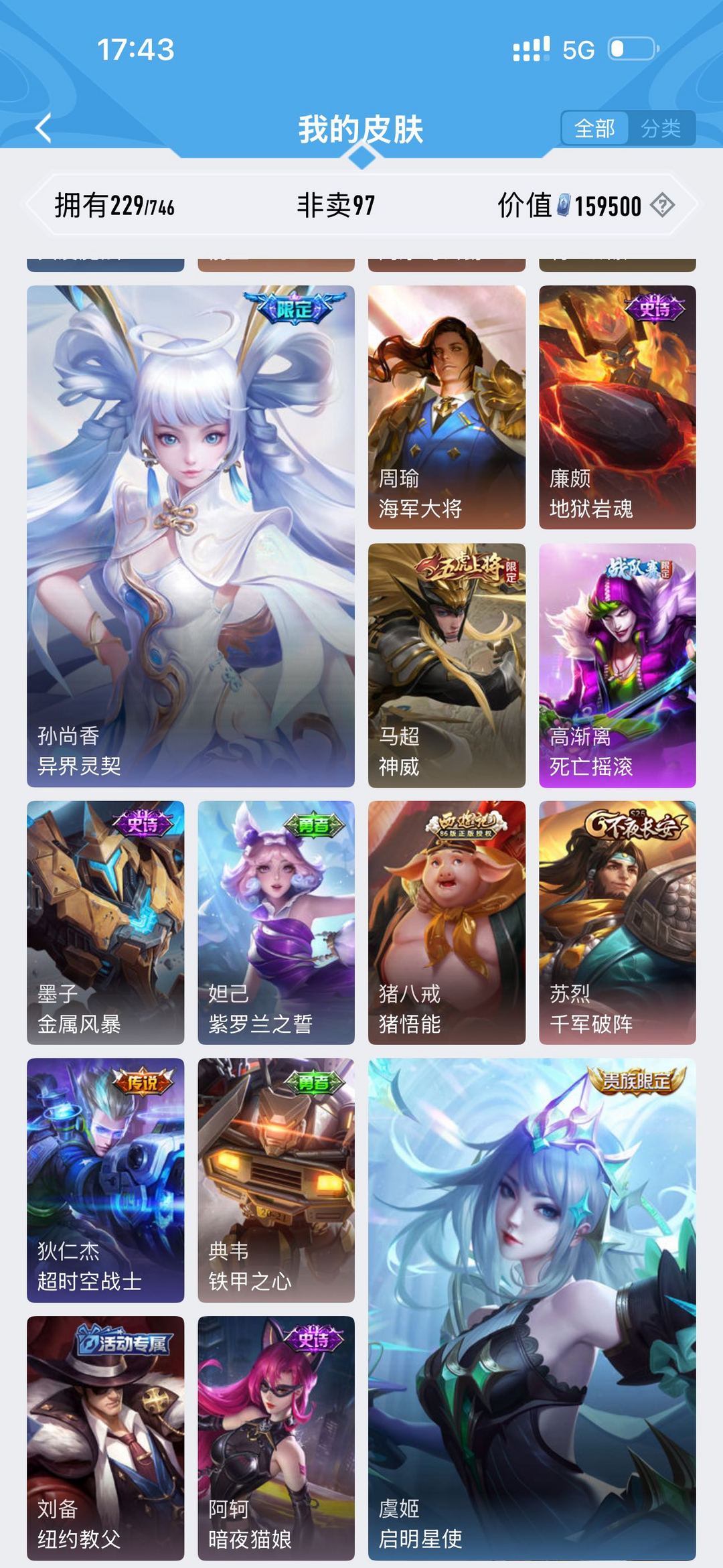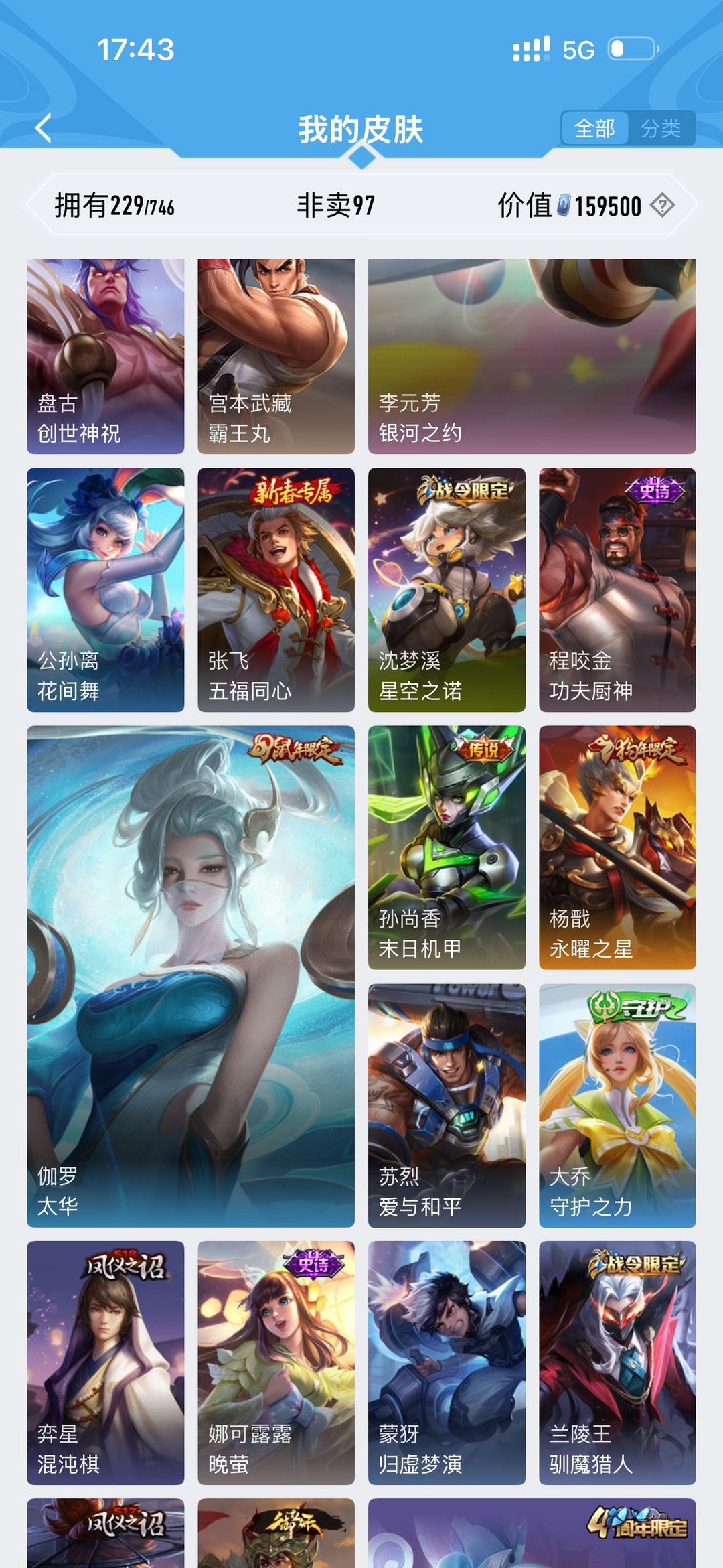 230皮肤 满铭文 可排位 满英雄星耀可带妹