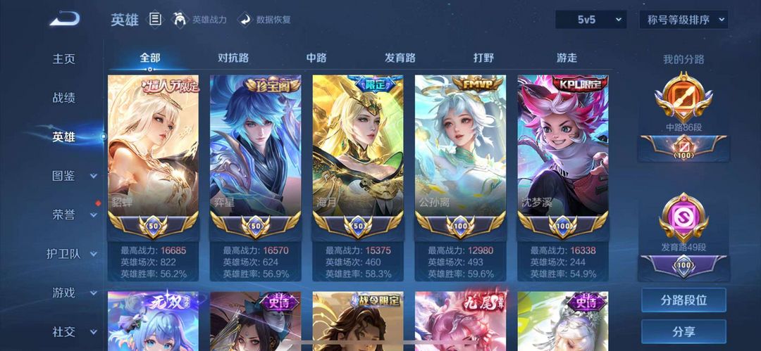 86段中路历史五小国,445皮肤贵族十,现段位王者
