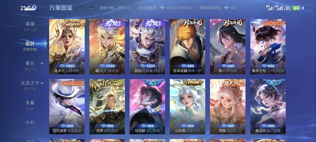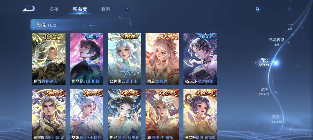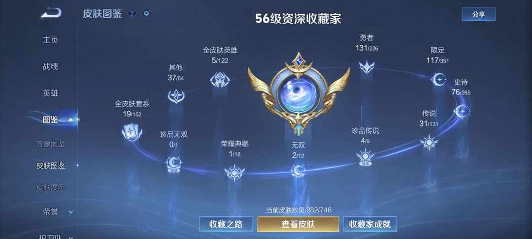 安卓q区282皮肤,1荣耀 2无双 4珍品传说 1星传说 31传说 75史诗 琥珀纪元 九霄神辉