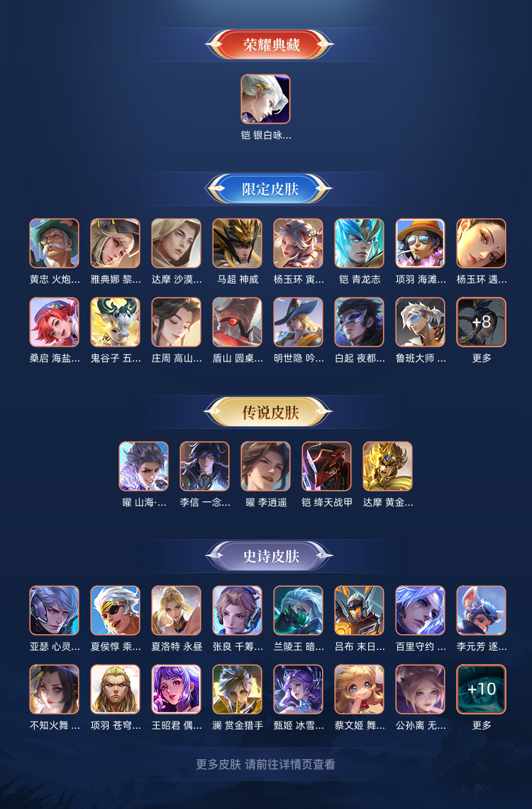 诸葛亮天机白泽,神威,凯典藏,曜3个限定皮,达摩传说皮等等