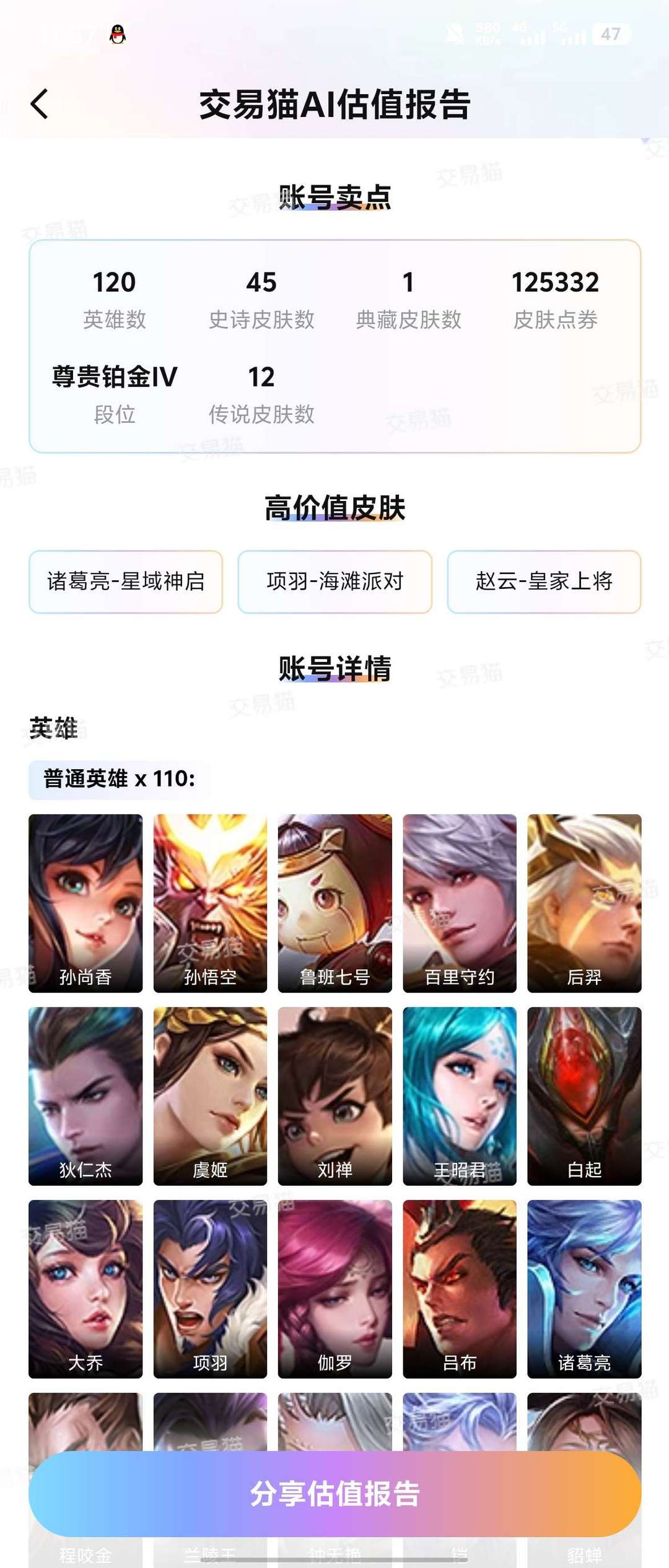 游戏区服:王者荣耀-QQ苹果-QQ账号