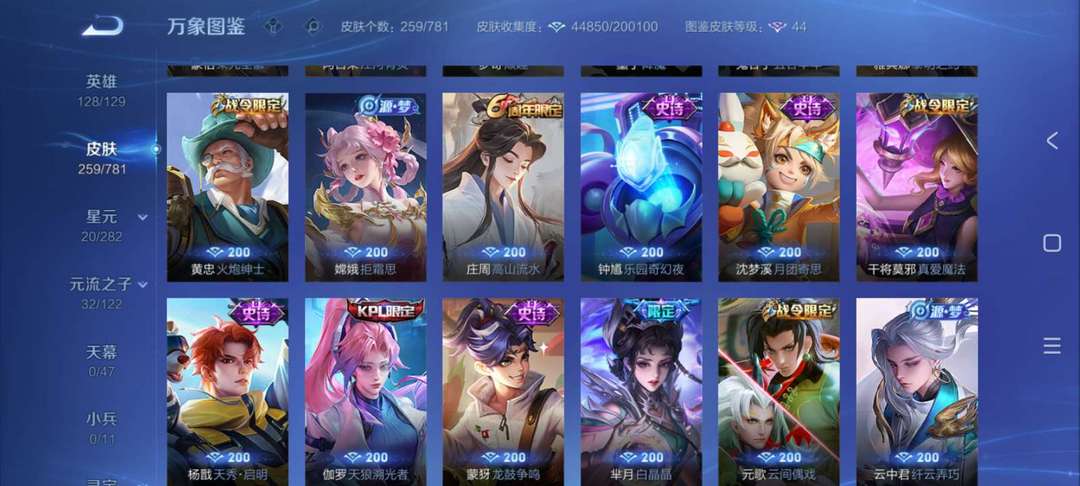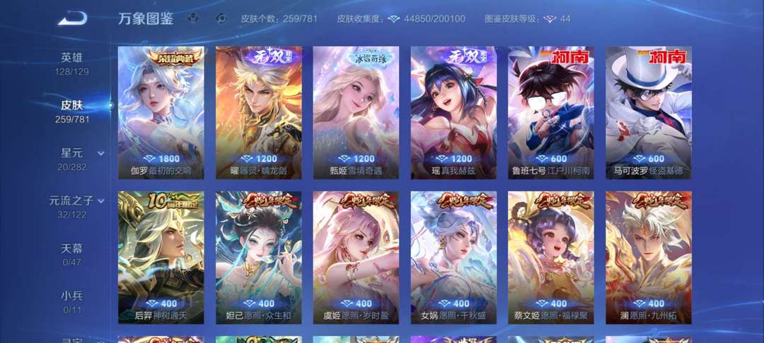一典藏 瑶 曜无双 柯南基德 冰雪奇缘 多英雄多皮肤(无双/年限/传说/史诗)