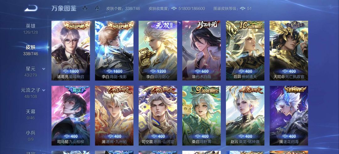 李白差凤求凰全皮 诸葛典藏 霏全皮 刘备全皮 历史金标