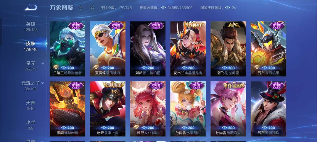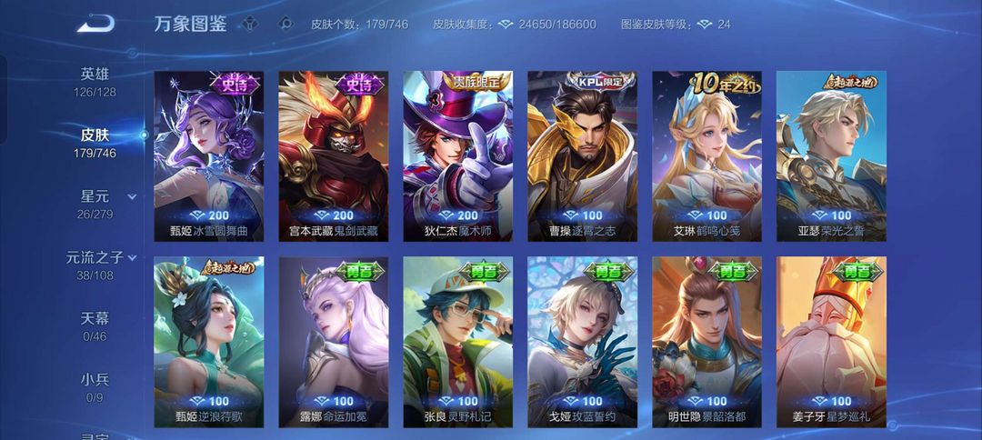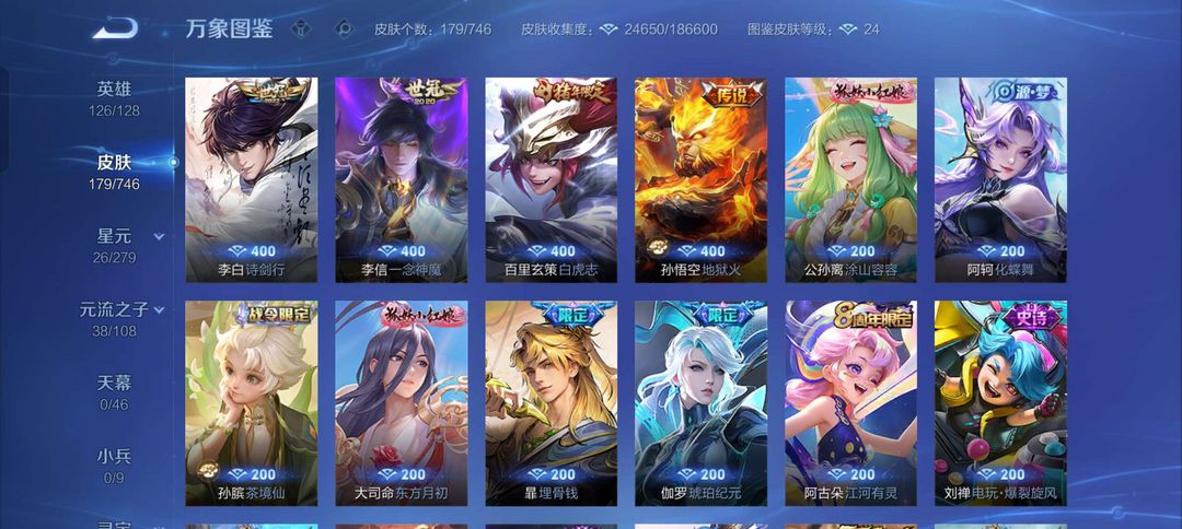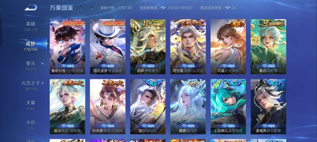 白虎志,柯南基德,凯琥珀纪元,司空震蛇限,孙尚香赵云龙限,露娜李信世冠皮肤,诸葛亮鹤羽星尊,