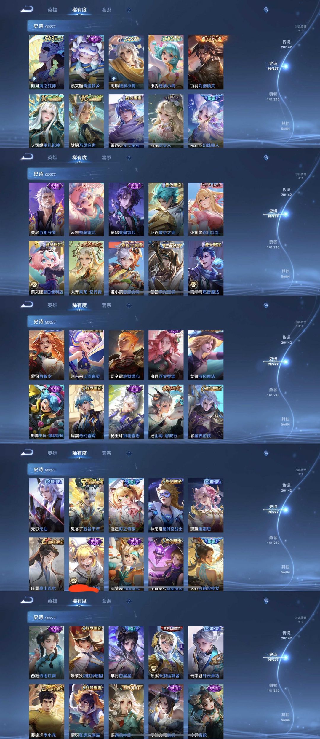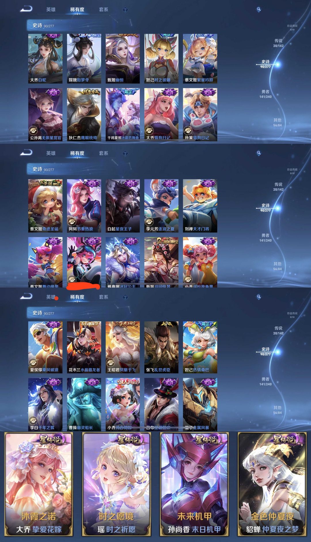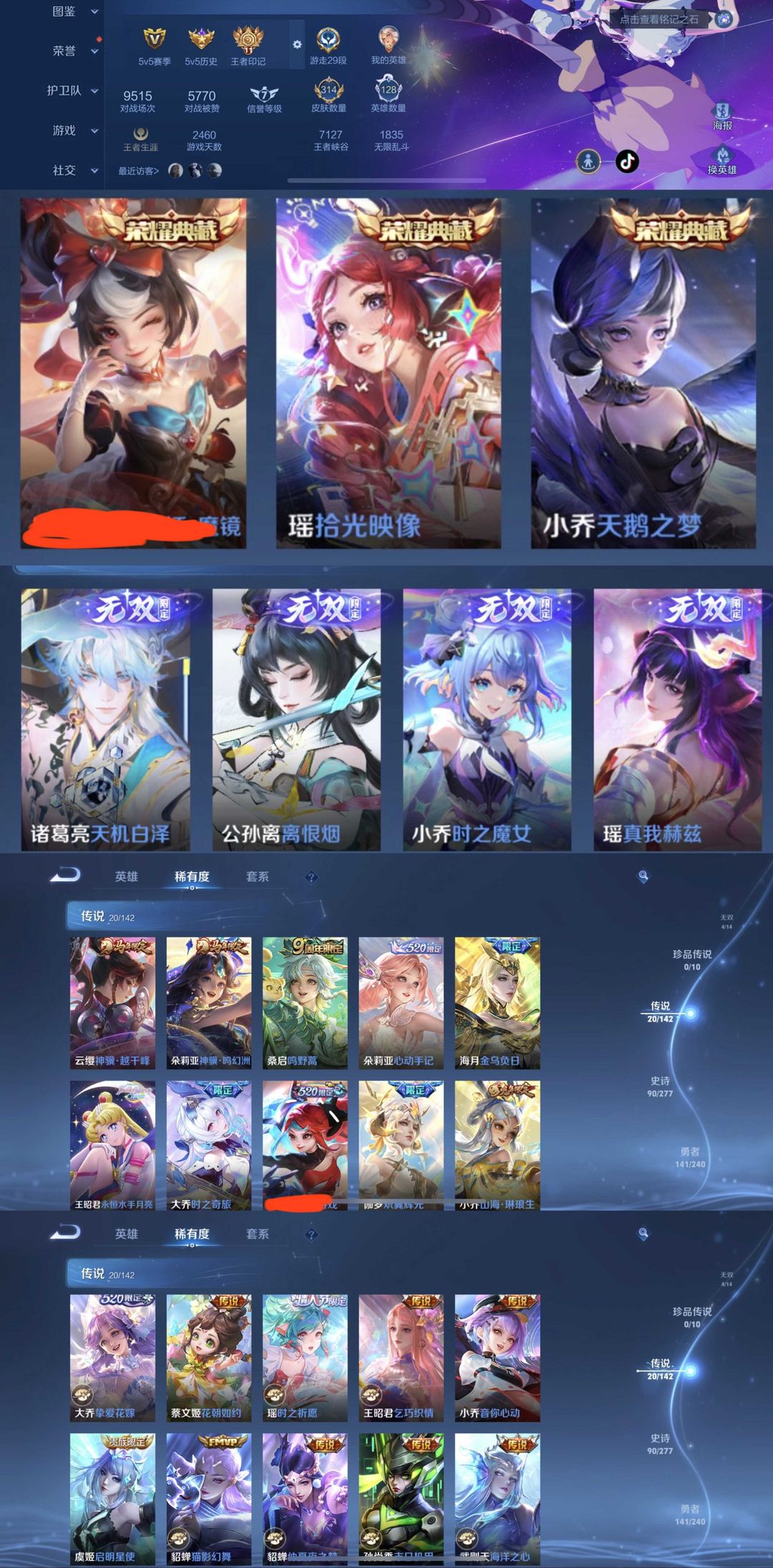 限制: 撤单率<49%才可租用此帐号装备描述:时间到了还登录白玩或者顶号全部改密拉黑处理永不解除,顶号机器会秒禁玩改密,顶号不仅拉黑还没得玩,赚三两块不容易,请理解谢谢。 ❤❤❤❤❤❤❤❤❤❤❤❤❤❤❤❤❤❤❤ 请勿开挂,挂机,送头,骂人,撤单后游戏等如有违规永久拉黑永不解除。 重置二级密码不要费劲了,号主每天都会上号查看,多行不义必自毙,人在做天在看,多做好事多自律,少做缺德事。 该号英雄128个,皮肤314个,典藏3个,无双4个,星传说4个,传说20个,史诗90个祝您游戏愉快~