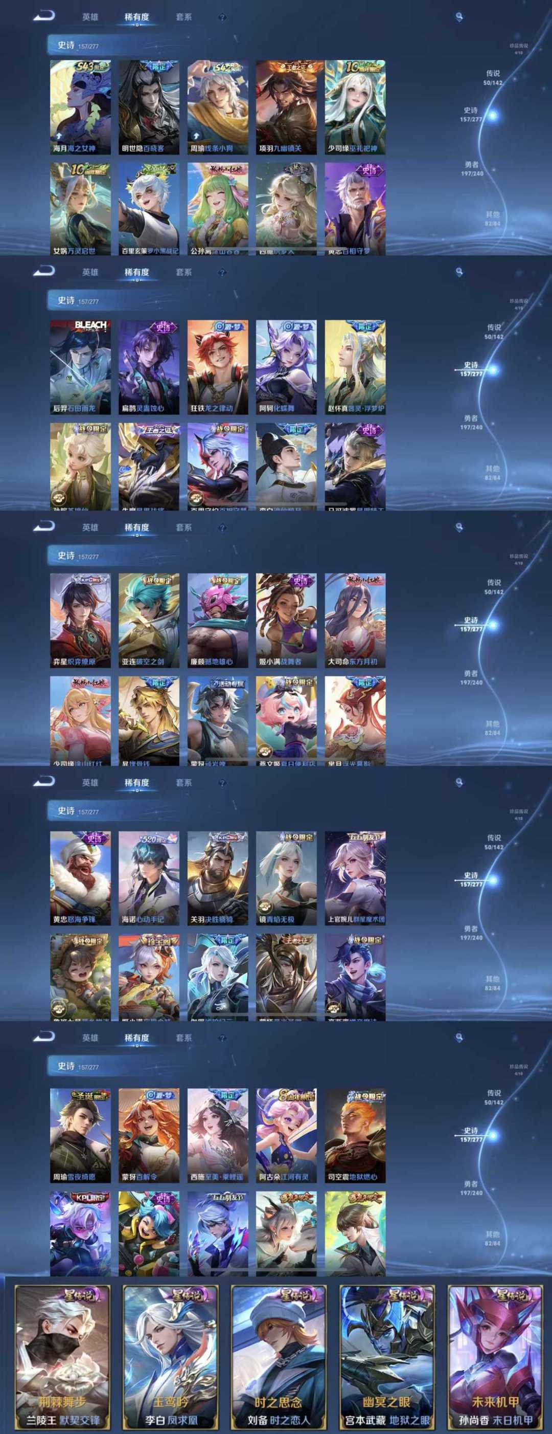 限制: 租号2次及以上 | 撤单率<49%才可租用此帐号装备描述:时间到了还登录白玩或者顶号全部改密拉黑处理永不解除,顶号机器会秒禁玩改密,顶号不仅拉黑还没得玩,赚三两块不容易,请理解谢谢。 ❤❤❤❤❤❤❤❤❤❤❤❤❤❤❤❤❤❤❤ 请勿开挂,挂机,送头,骂人,撤单后游戏等如有违规永久拉黑永不解除。 重置二级密码不要费劲了,号主每天都会上号查看,多行不义必自毙,人在做天在看,多做好事多自律,少做缺德事。 该号英雄130个皮肤495个,典藏2个,无双3个,珍品传说4个,星传说5个,传说50个,史诗157个,祝您游戏愉快~