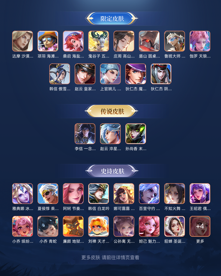 本号V6 皮肤共有105皮,传说4皮,限定31皮。