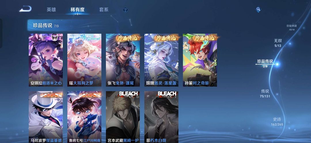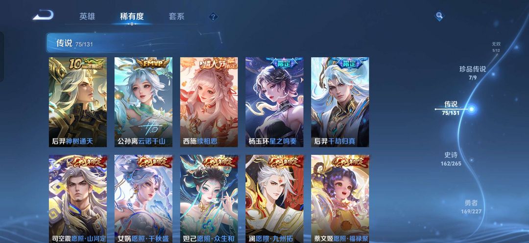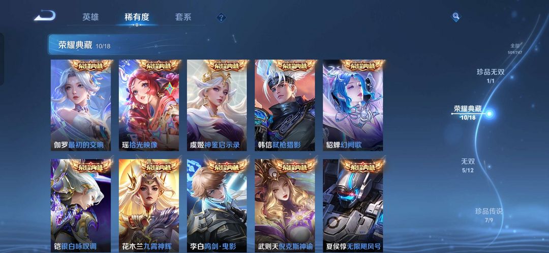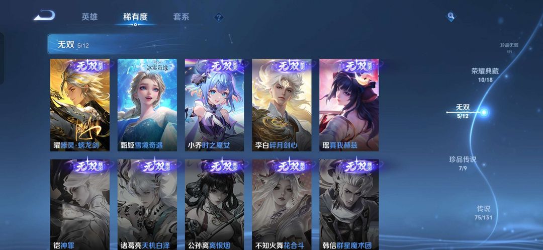 荣耀V10·小国标李白·貂蝉珍品无双·10荣耀典藏·5无双·75传说