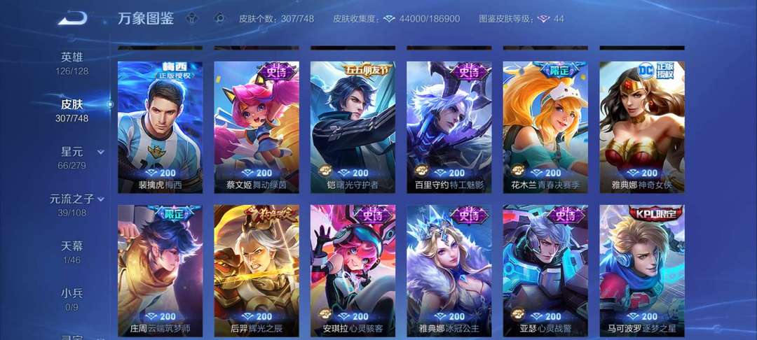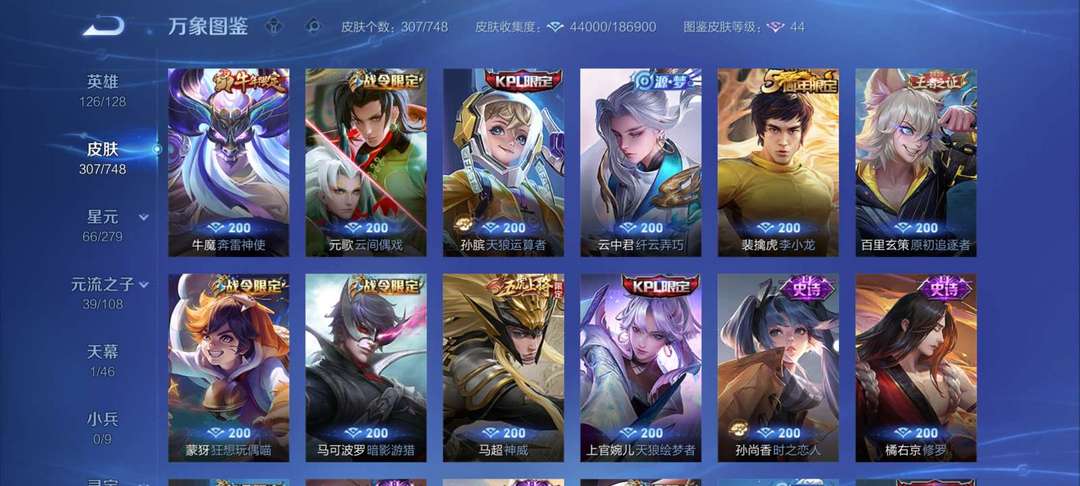装备描述:马超神威,猴子除了大圣典藏和战令皮全有,还有马克kpl,赵云引擎之心和梅西神奇女侠武陵仙君等