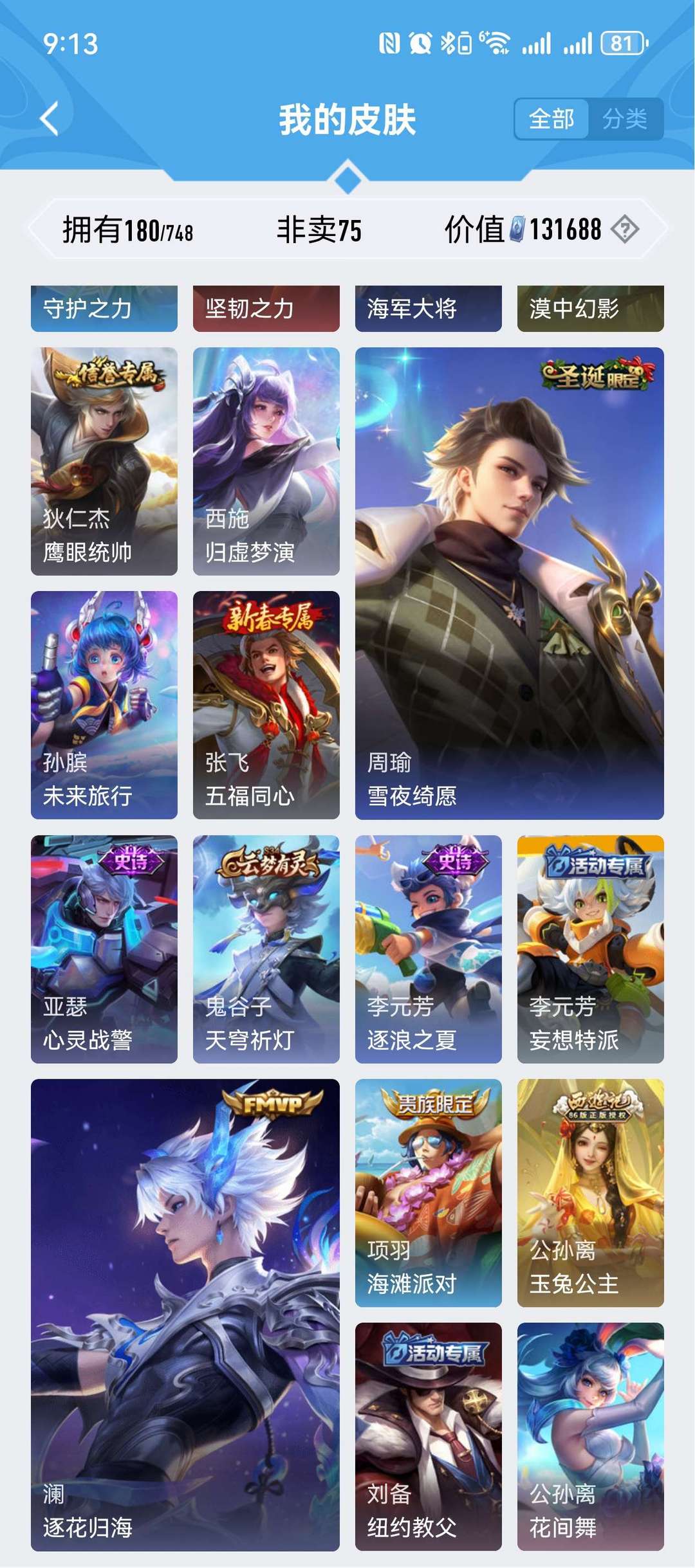 两无双,李白无双和东方曜无双。孙尚香异界灵契,鲁班柯南,公孙离只差一个无双皮肤。马超琥珀纪元