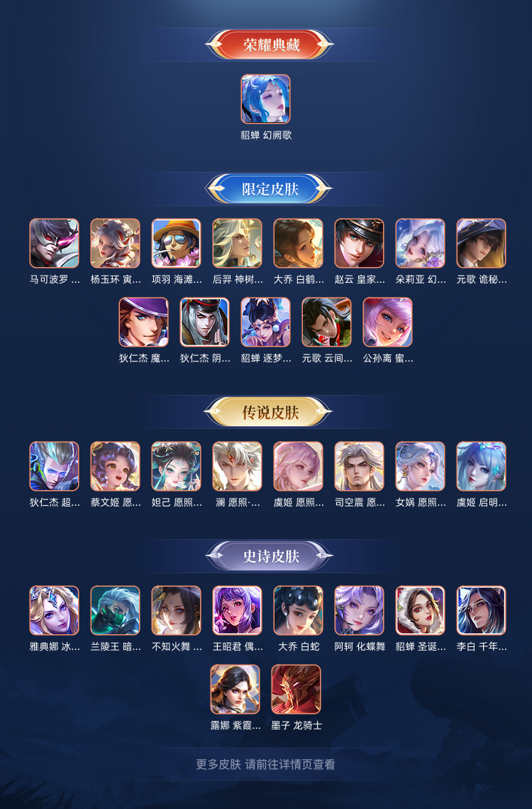 皮肤数量100 皮肤价值92396 珍品传说2 典藏1 无双5 传说13 史诗29