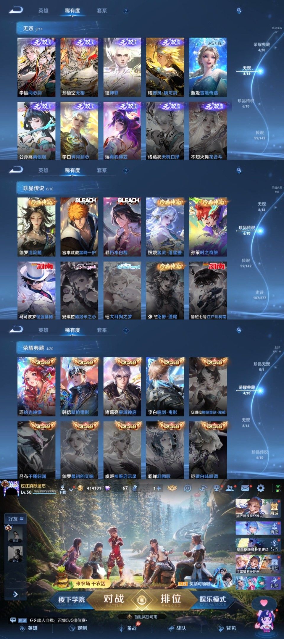 限制: 租号1次及以上 |装备描述:问心剑无相✨全马限14年限✨8无双4水6珍传59传14年限3星元104史诗✨神罪沧流箭✨星君娄金黑崎一护✨怪盗基德时之奇旅✨器灵落星盏朽木白哉✨铠_神罪、公孙离_离恨烟、李信_问心剑、瑶_真我赫兹、李白_碎月剑心、孙悟空_无相、曜_器灵螭龙剑、甄姬_雪境奇遇诸葛亮_星域神启、李白_鸣剑曳影、韩信_弑枪猎影、瑶_拾光映像貂蝉_神骥聚万邦、镜_炽阳神光、裴擒虎_祥瑞亨通、曜_李逍遥、不知火舞_绯月行、李信_一念神魔、刘备_时之恋人、朵莉亚_心动手记、西施_游龙清影、女娲_愿照千秋盛、云缨_神骥越千峰、云中君_群星魔术团、元歌_诡秘之主、桑启_鸣野蒿、李白_凤求凰、裴擒虎_寅虎赤拳、朵莉亚_神骥鸣幻洲、墨子_黄金天蝎座、梦奇_胖达荣荣、孙膑_小动物乐团、马超_琥珀纪元、李元芳_星君娄金、狄仁杰_超时空战士、干将莫邪_千山共赴、阿轲_罗刹妄海、铠_冥王哈迪斯、后羿_神树通天、澜_逐花归海、艾琳_觅芳踪、夏洛特_浮生妄、曜_山海苍雷引、百里玄策_白虎志、孙尚香_末日机甲、关羽_神骥镇沧海、澜_愿照九州拓、王昭君_长夜焕生、大乔_时之奇旅、花木兰_异界灵契、马超_神骥逐星野、露娜_霜月吟、赵云_乘